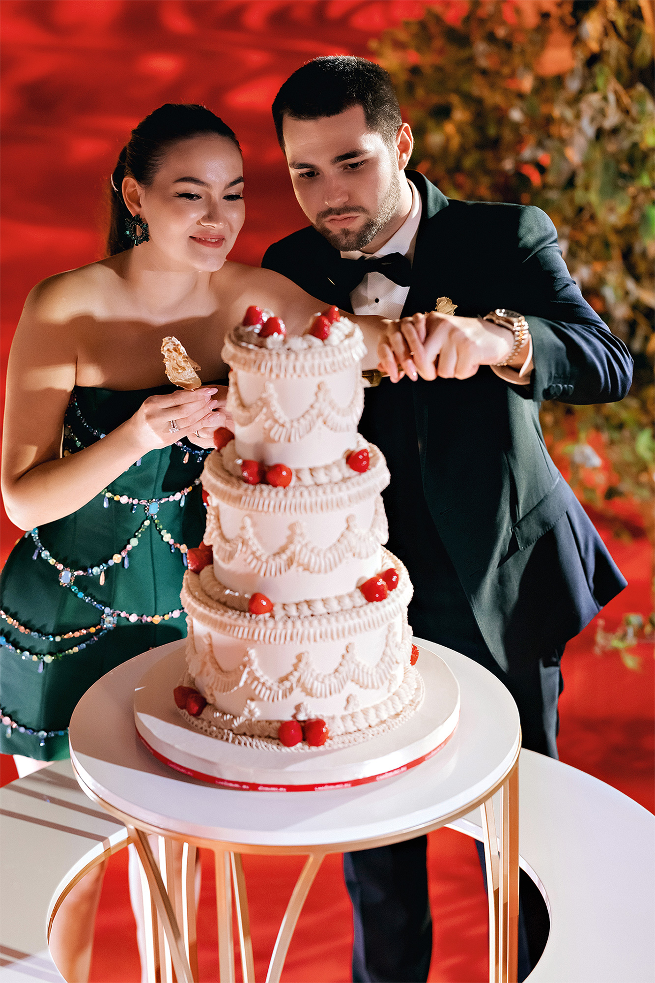 Вдохновленная «Алисой в Cтране чудес», волшебными мирами Тима Бёртона и магической вселенной Гарри Поттера, Лиана мечтала о чём-то сказочном и необычном. Поэтому создали удивительный мир, в котором переплелись её мечты и главное пожелание жениха: чтобы Лиана была счастлива.