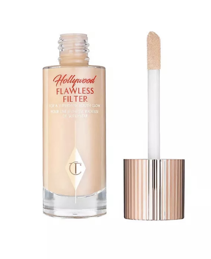 Тональное средство Charlotte Tilbury. Обожаю наносить этот продукт точечно под тон на выступающие части лица и в уголки глаз. Его также можно использовать вместо тона — подсвечивает и прекрасно освежает лицо.