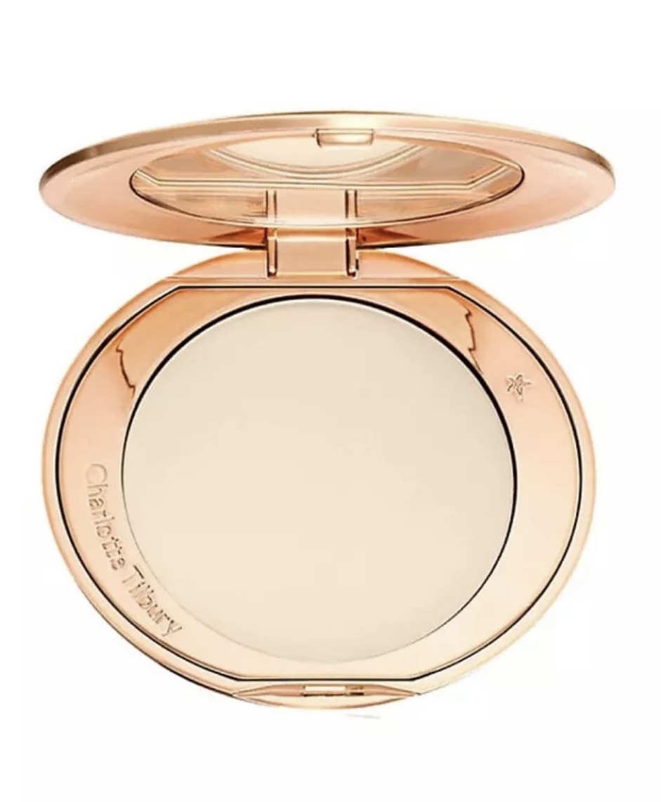 Финишная пудра Charlotte Tilbury. Надолго матирует кожу лица, имеет невесомую текстуру и не утяжеляет макияж. Главное — наносить точечно небольшой кистью на Т-зону лица.