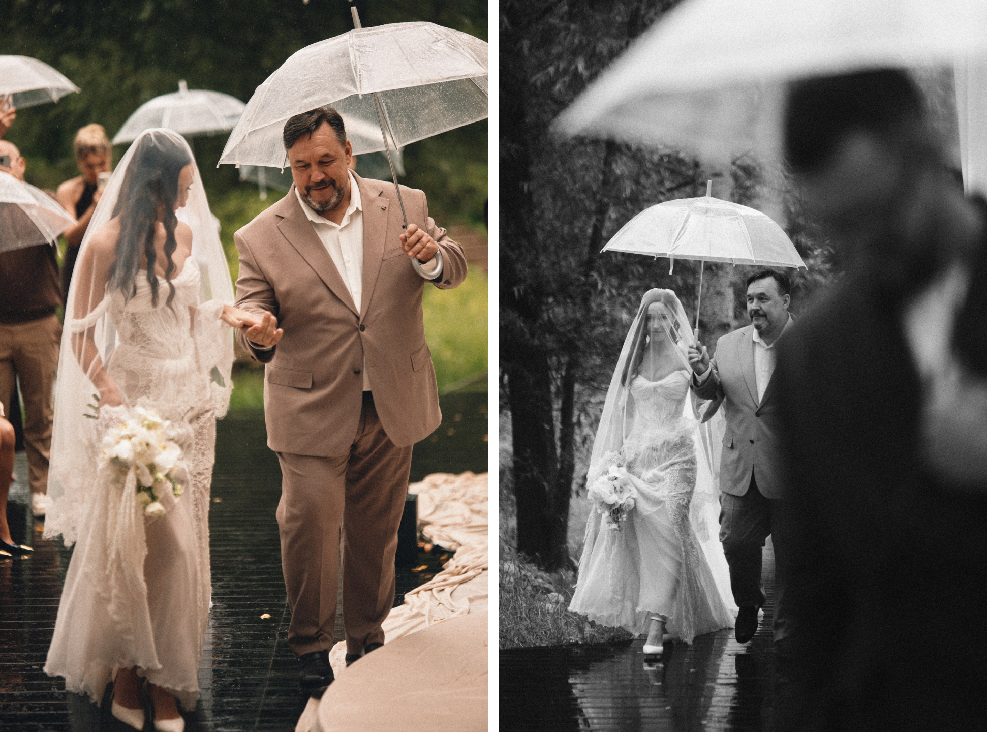 Первый форс-мажор, который со мной произошёл, — у меня заложило уши в момент, когда я ехала на церемонию. Боялась, что не смогу ничего услышать. Но в итоге, когда я доехала на площадку, смогла отдохнуть, и проблема решилась сама собой. Второй форс-мажор — дождь. У меня должно было быть окно, когда нет дождя, чтобы я вышла на церемонию, но в итоге я долго одевалась и вышла прямо в дождь. Это не испортило атмосферу, поэтому ситуация меня совсем не расстроила. О других форс-мажорах не знаю, потому что Стас меня не посвящал в моменты каких-то проблем на нашей свадьбе. У нас была организатор Тереза Бородина, она самостоятельно решала все вопросы, за что ей большое спасибо.
