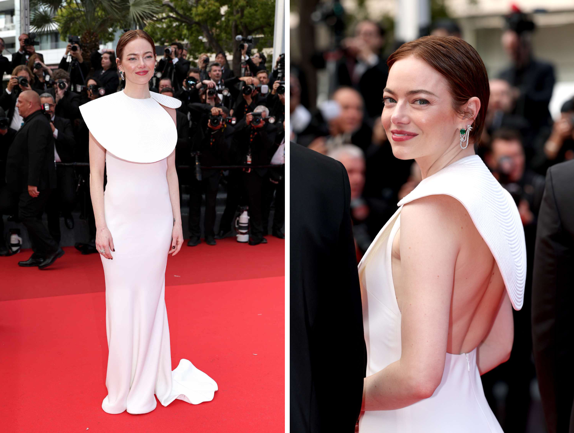 Например, 34-летняя актриса Дженнифер Лоуренс, на премьере картины «Умри, моя любовь» появилась в роскошном кутюрном платье Dior без бретелек. 36-летняя Эмма Стоун загипнотизировала публику графичным платьем Louis Vuitton. 49-летняя Анджелина Джоли выбрала наряд с открытыми плечами от Brunello Cucinelli. 55-летняя топ-модель Наоми Кэмпбелл покорила фотографов в лаконичном белоснежном платье Dolce & Gabbana. Не обошлось в Каннах и без творений российских дизайнеров: 36-летняя модель и инфлюенсер Эльза Хоск выбрала для столь важного события платье дизайнера Анастасии Задориной. Эти и другие образы в подборке Wedding Magazine.