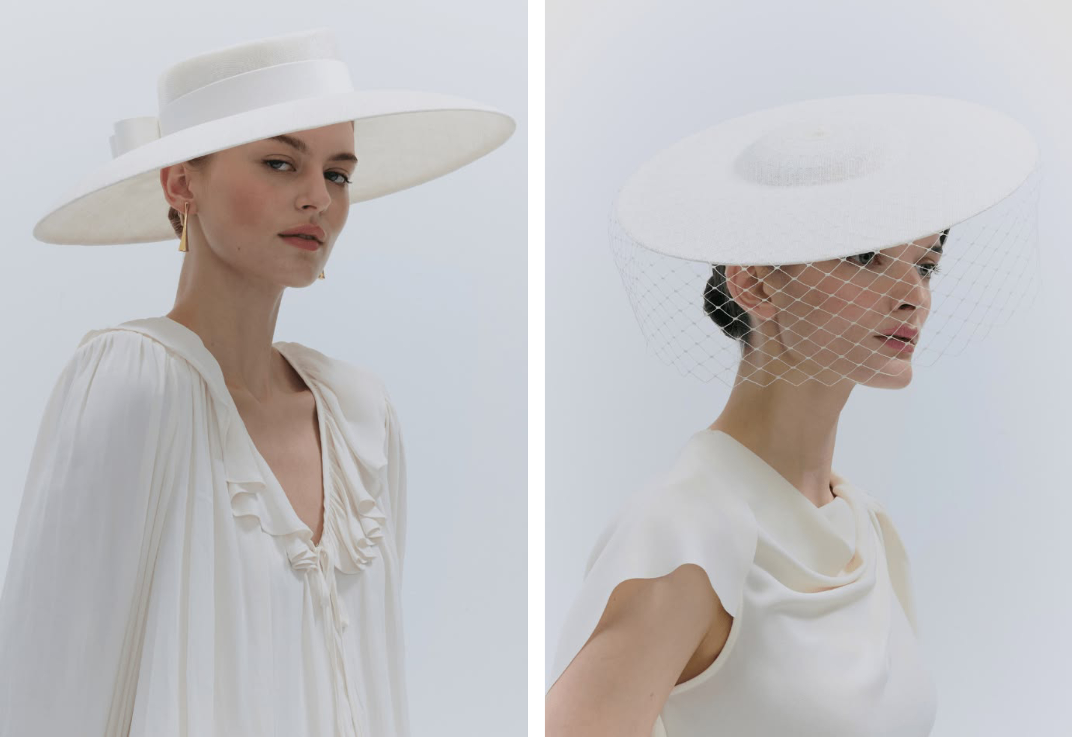 Шляпа в образе — смелое заявление о вкусе невесты. Это не просто аксессуар, а центральный элемент композиции. Для богемной свадьбы или выездной церемонии на природе идеально подойдут федоры с широкими полями из мягкого фетра или соломы. Если хочется гламура 20-х, выбирайте миниатюрную «таблетку» с вуалью или клаш (шляпку без полей), которая крепится сбоку. Такой выбор говорит о том, что невеста уверена в себе и готова к эффектным фотографиям.