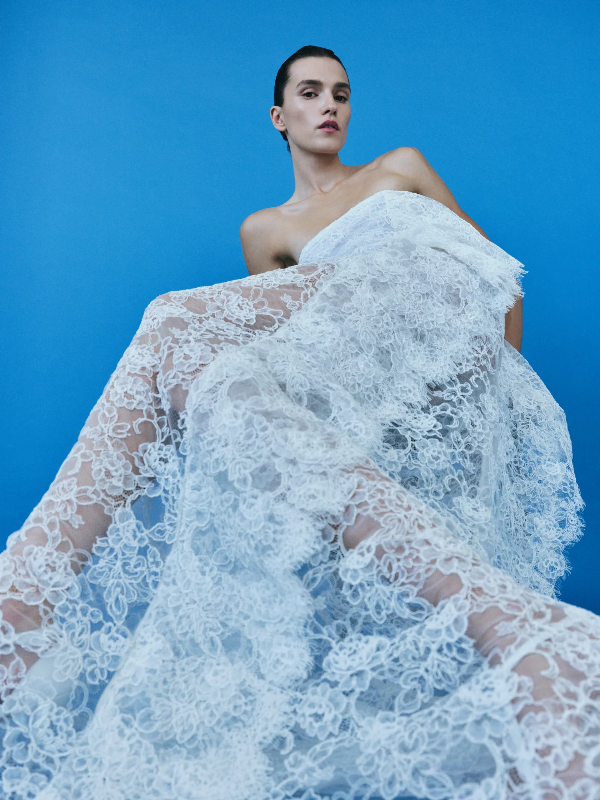 «На протяжении многих лет я разрабатывал в индивидуальном порядке свадебные платья для близких друзей и замечал, что некоторые клиенты выбирают для дня свадьбы белые платья из регулярных коллекций. Очень приятно, когда бренд становится частью столь важного события в жизни наших клиентов. Девушка, которая вдохновляла меня во время работы над свадебной коллекцией — это та, что не боится рисковать. Она может выбрать черное вместо белого или костюм вместо платья», — поясняет Эсбер.
