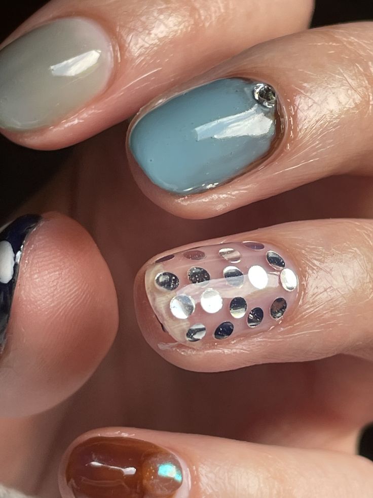 Экспериментируйте с композицией: выделите пайетками лишь один-два пальца на руке, а остальные покройте насыщенным однотонным лаком — алым, изумрудным или глубоким синим. Классика — серебро и золото, но не бойтесь экспериментировать с цветными пайетками. Подобный маникюр добавит праздника вашему образу и точно поднимет настроение.