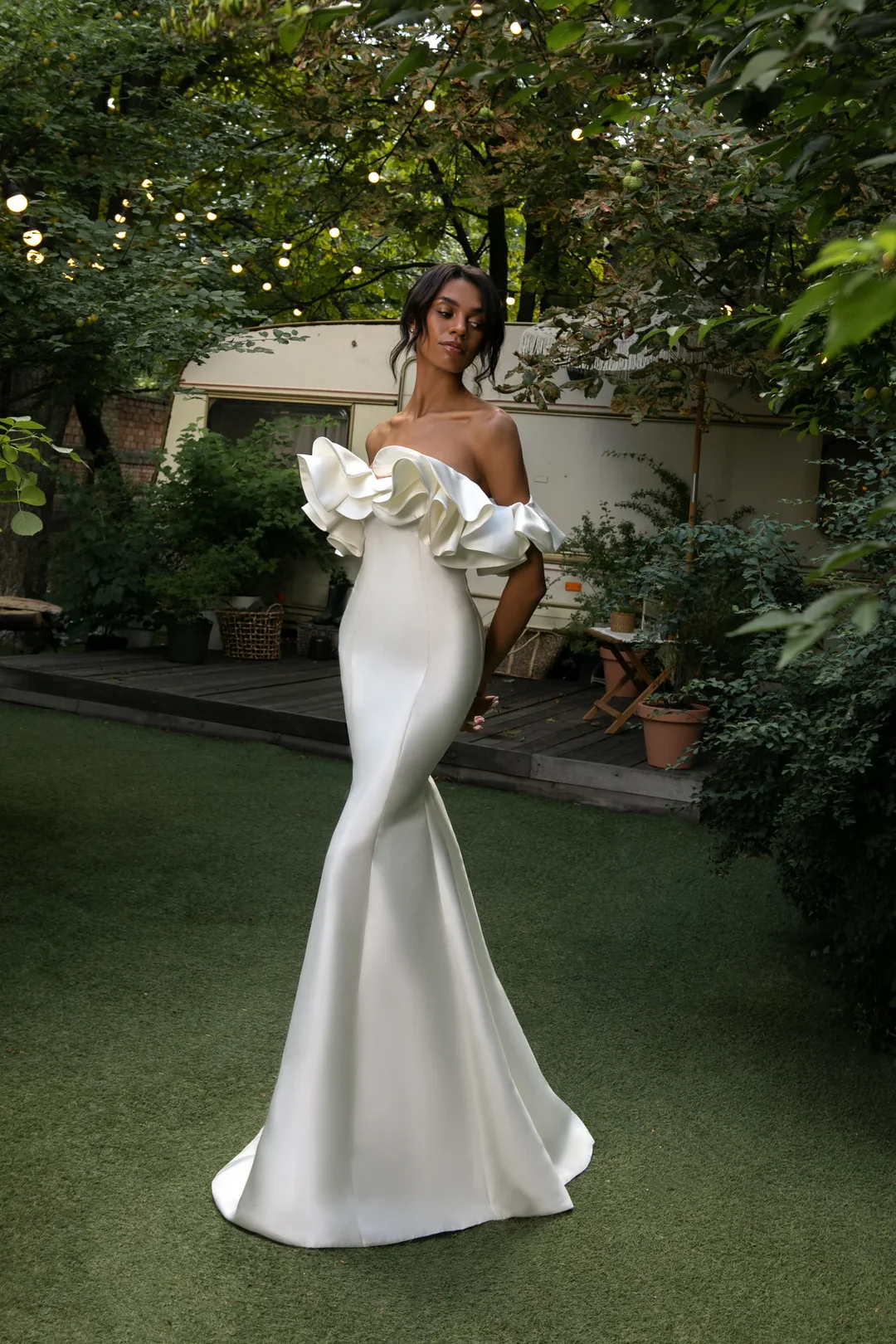 Объемы бедер и груди практически идентичны, а талия четко выражена у счастливых обладательниц фигуры типа «песочные часы». Самые выигрышные для вас фасоны — свадебное платье силуэта «русалка» или полностью облегающий наряд. Оба варианта прекрасно подчеркнут ваши идеальные пропорции.