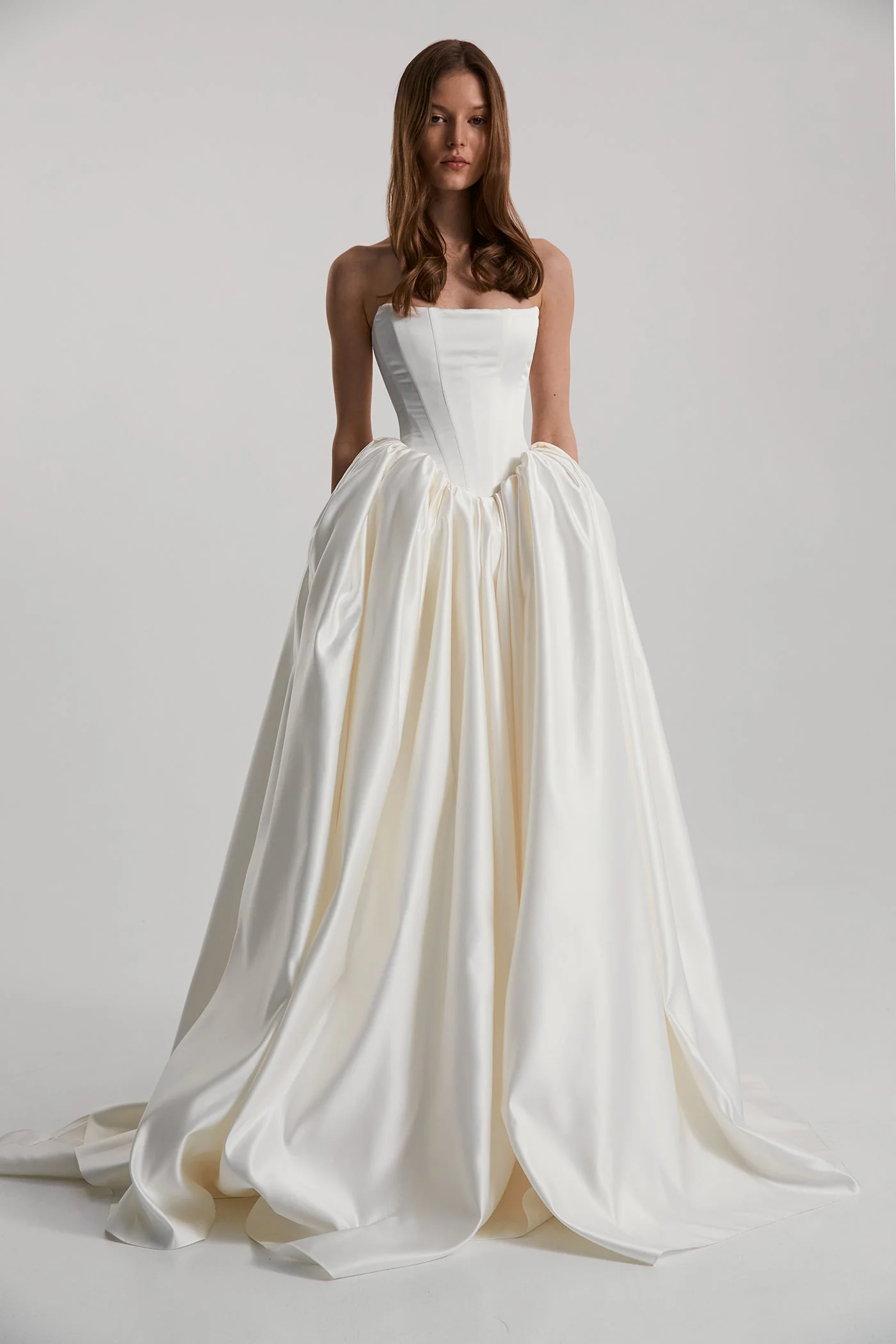Если плечи и грудь уже бедер, значит, мы имеем дело с фигурой «груша». В таком случае стоит обратить внимание на «А-силуэт» или пышное бальное платье. Такие фасоны как будто специально созданы для того, чтобы замаскировать крупный низ и создать гармоничный силуэт. Также лучше выбирать платья с корсетным верхом, который акцентирует внимание на изящной и тонкой талии.