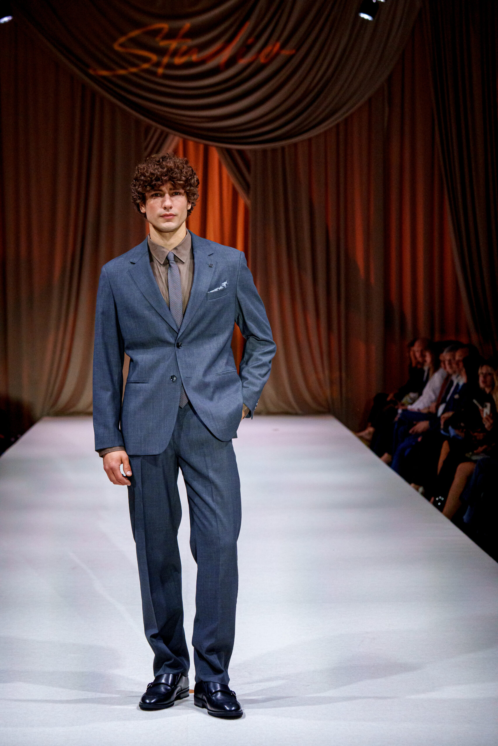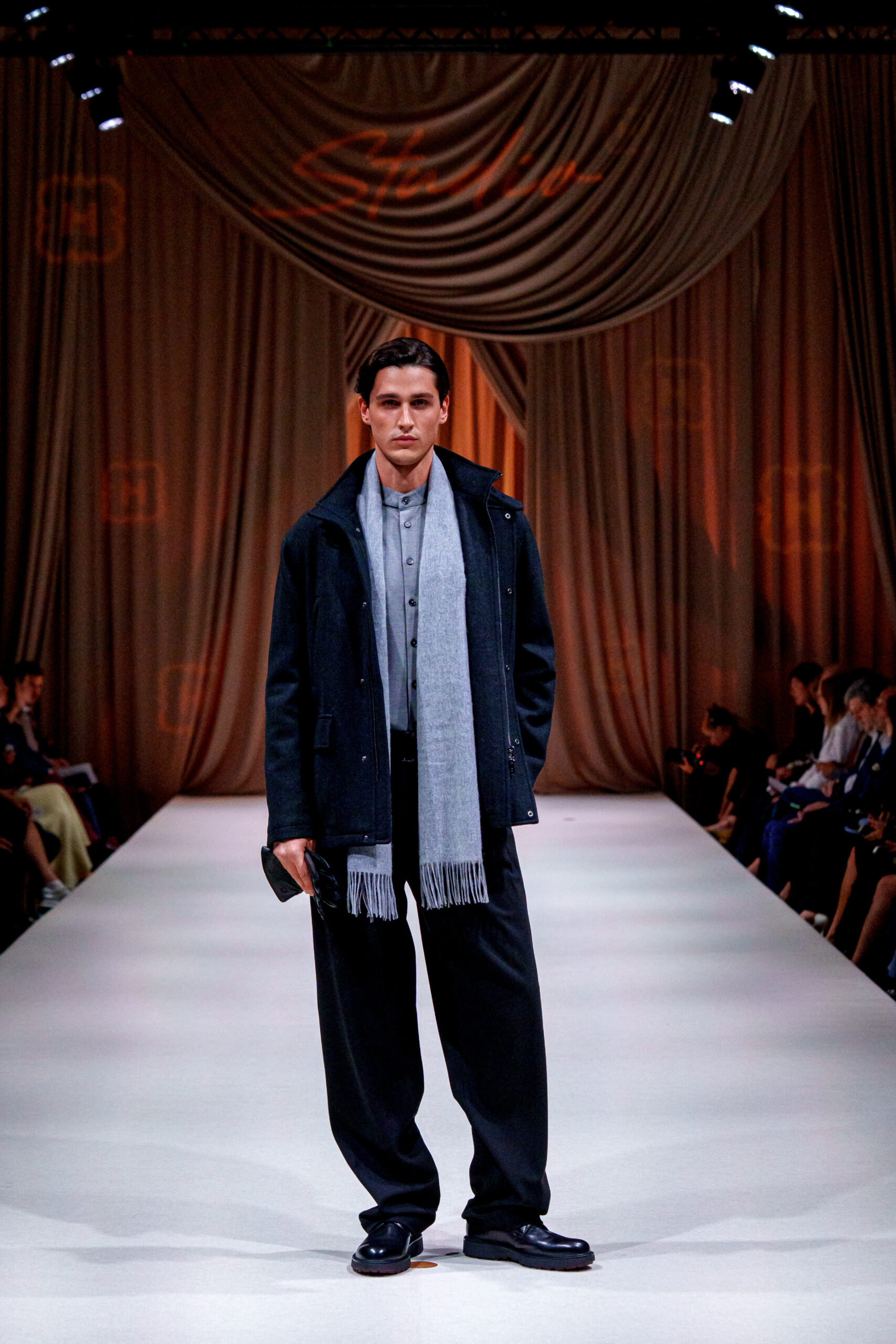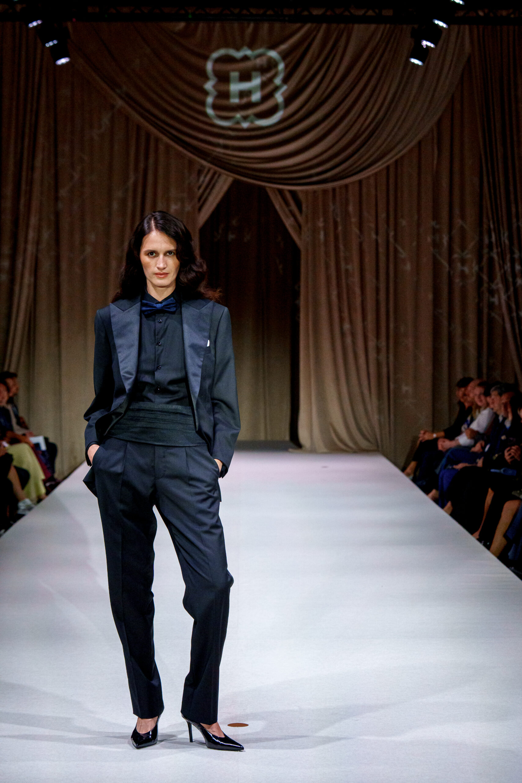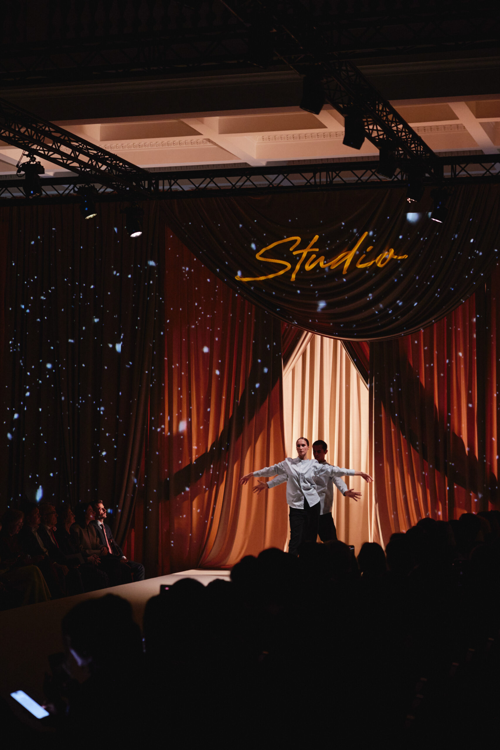 Модное шоу началось в атмосфере камерного театра: первый выход был открыт выразительным танцевальным соло «Танец как манифест стиля», поставленным и исполненным Ринатом Ханджян в элегантном классическом костюме из новой коллекции. Под звуки экспрессивной классической музыки танцовщик показал хореографию на стыке классического и современного балета. Выступление отражало концепцию новой коллекции: сочетание точности форм, сдержанной пластики и глубокой экспрессии. На подиуме сменяли друг друга силуэты, воплотившие эстетику уверенной элегантности.