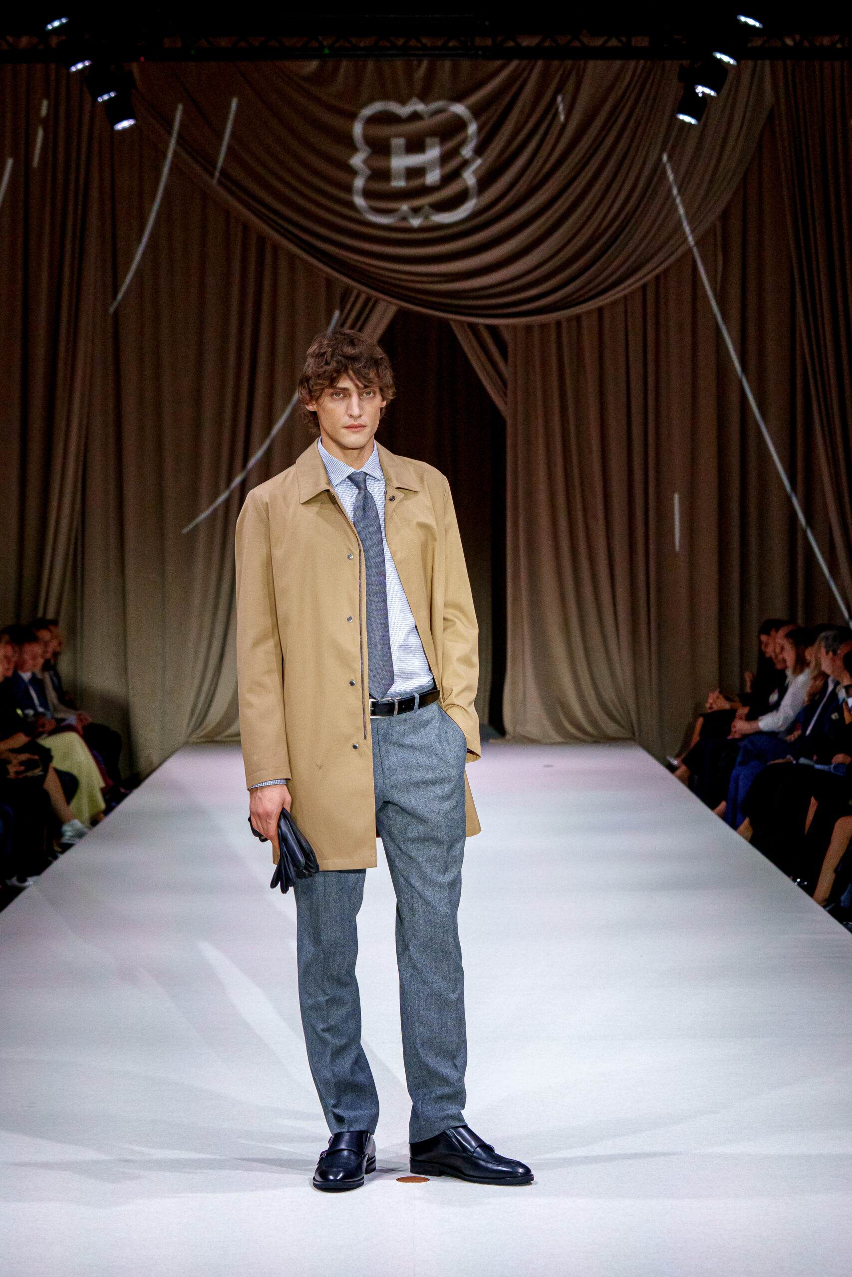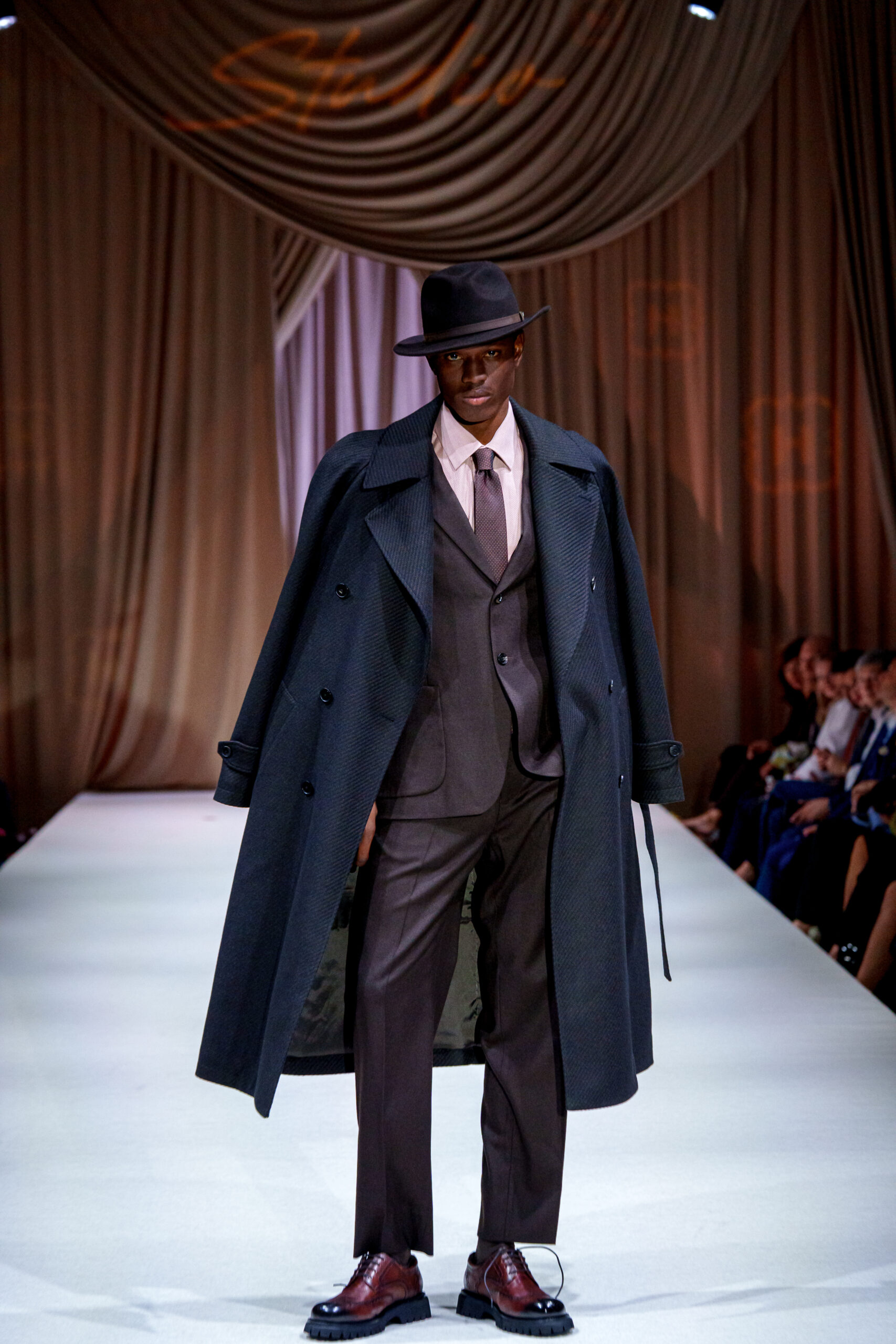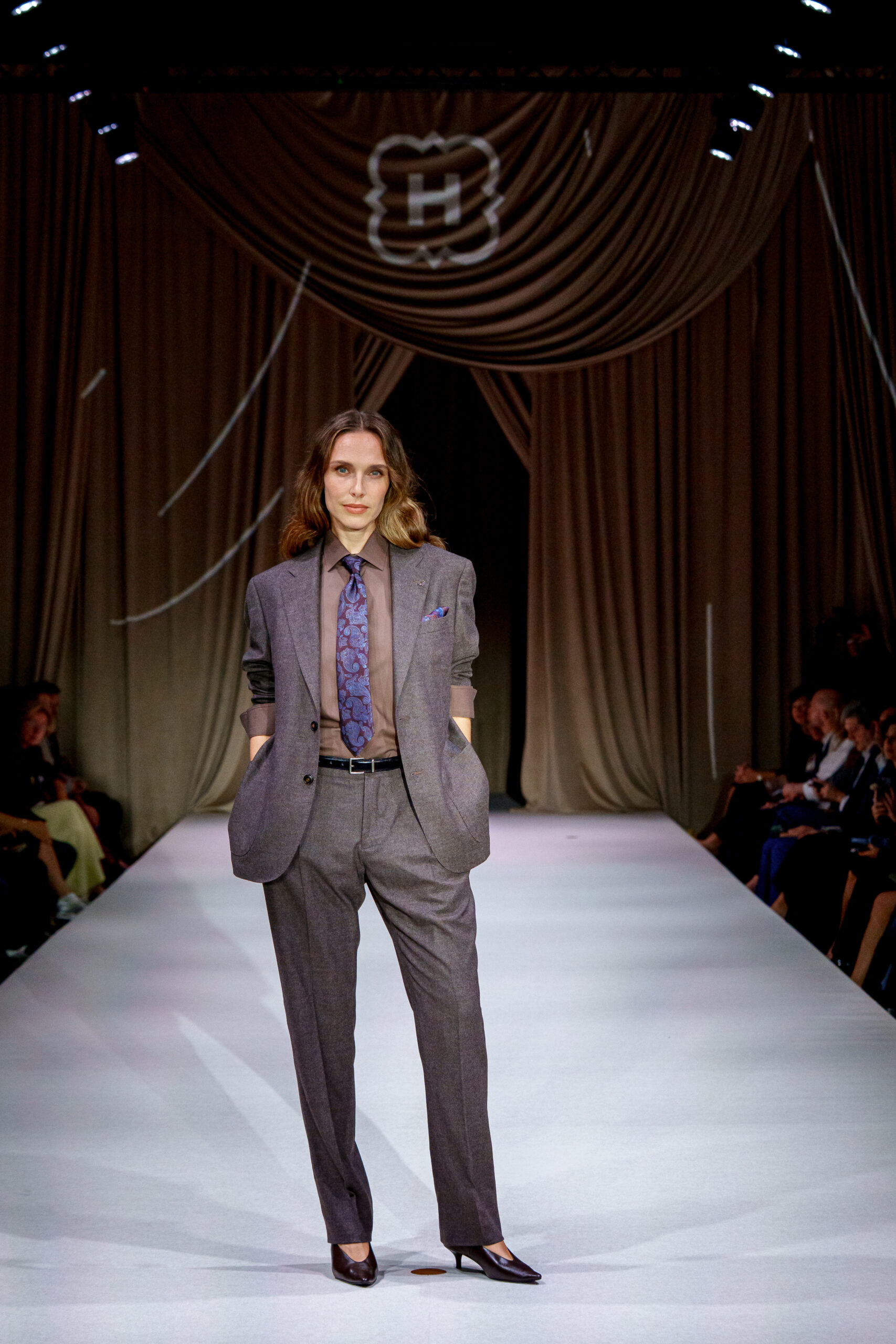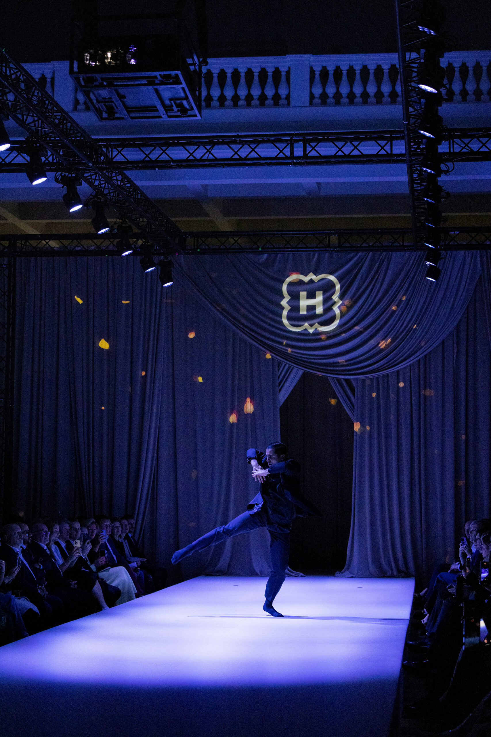 Модное шоу началось в атмосфере камерного театра: первый выход был открыт выразительным танцевальным соло «Танец как манифест стиля», поставленным и исполненным Ринатом Ханджян в элегантном классическом костюме из новой коллекции. Под звуки экспрессивной классической музыки танцовщик показал хореографию на стыке классического и современного балета. Выступление отражало концепцию новой коллекции: сочетание точности форм, сдержанной пластики и глубокой экспрессии. На подиуме сменяли друг друга силуэты, воплотившие эстетику уверенной элегантности.