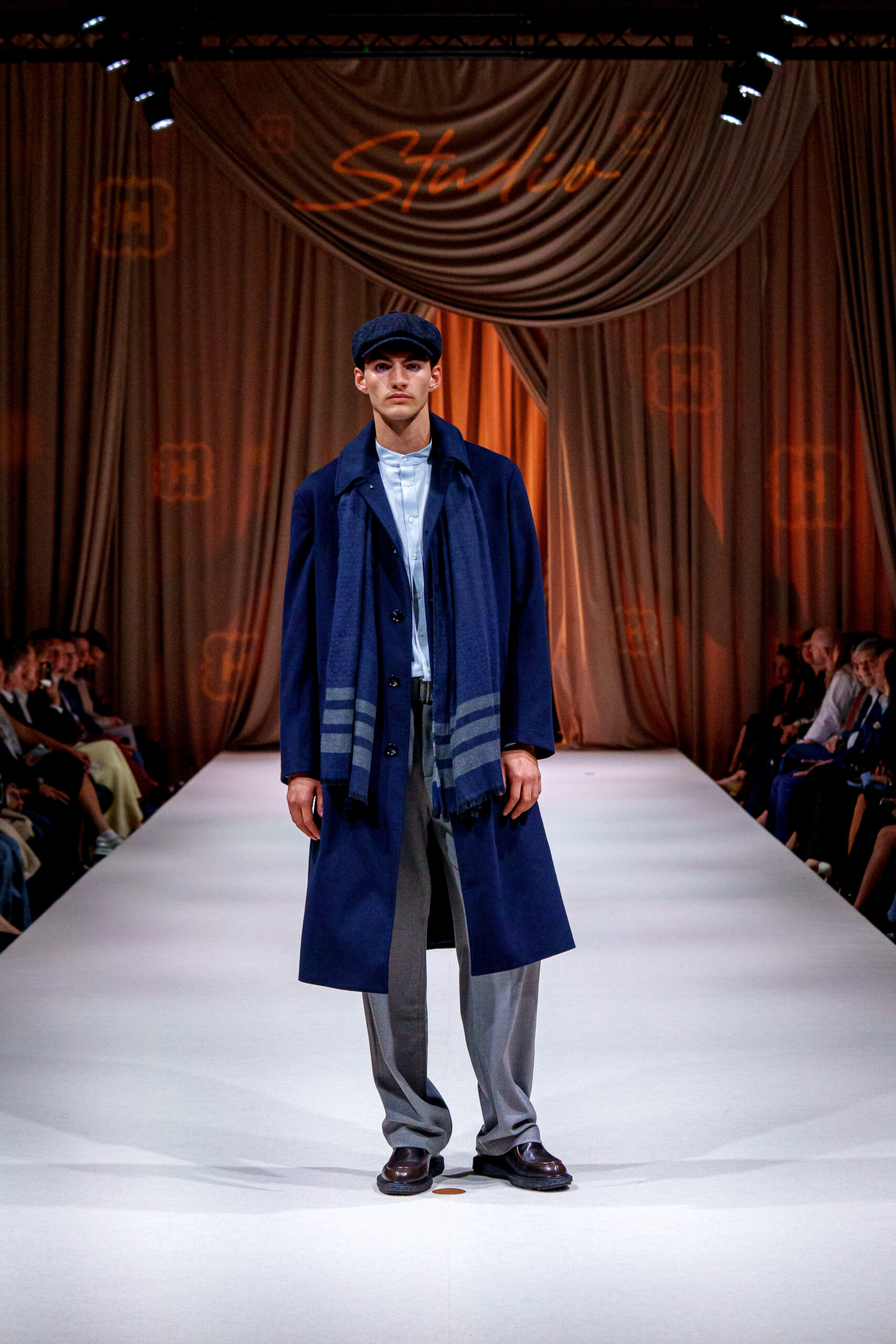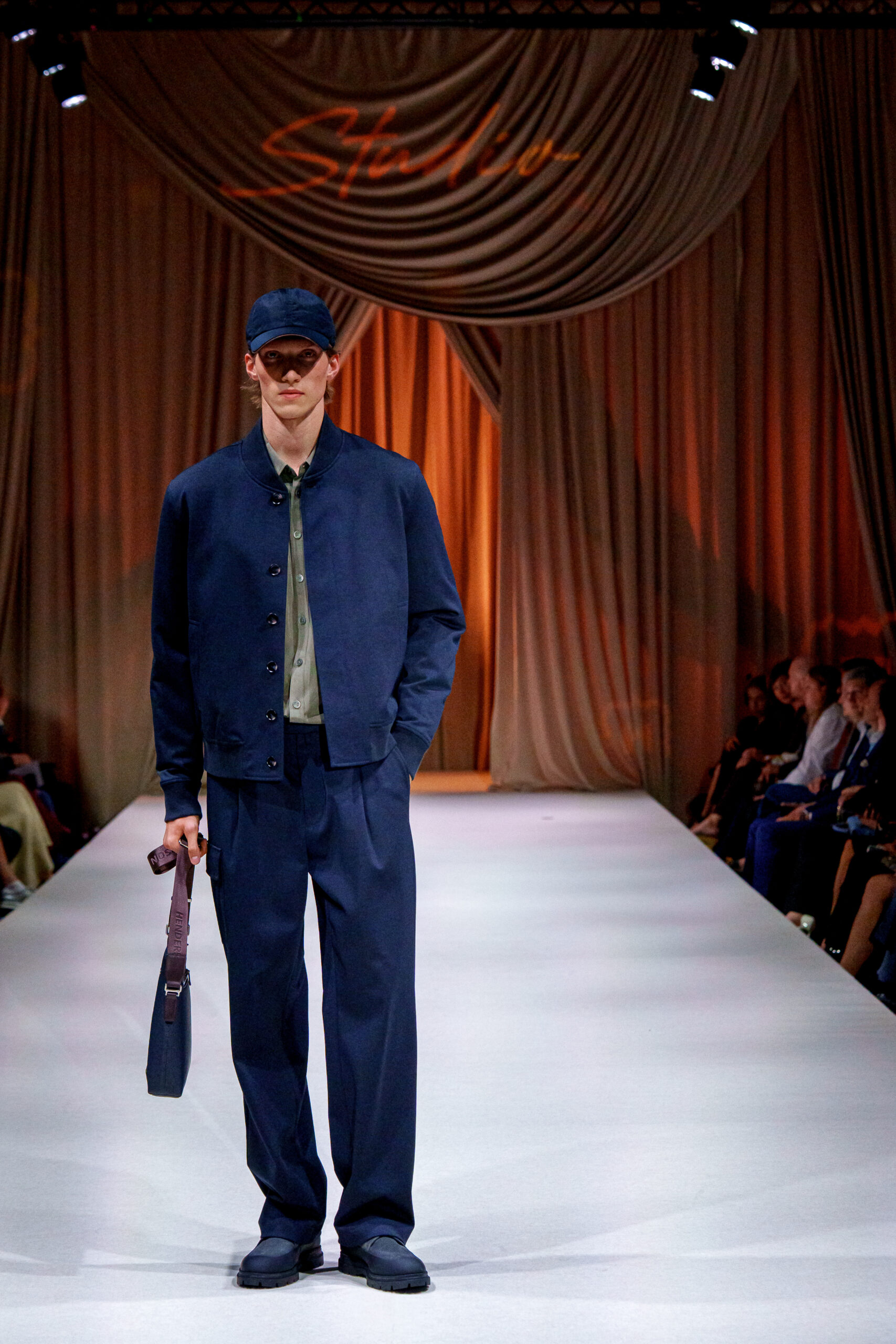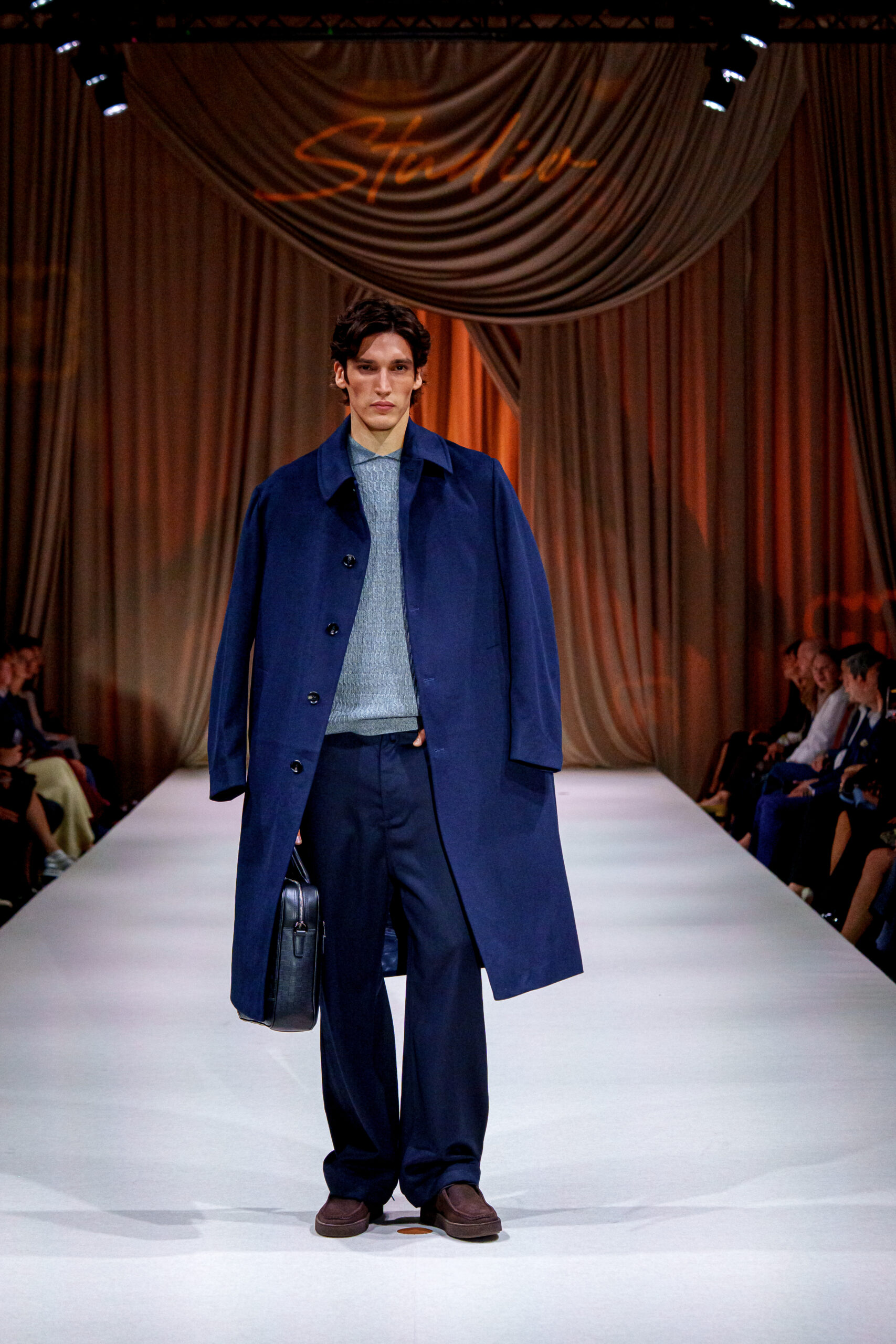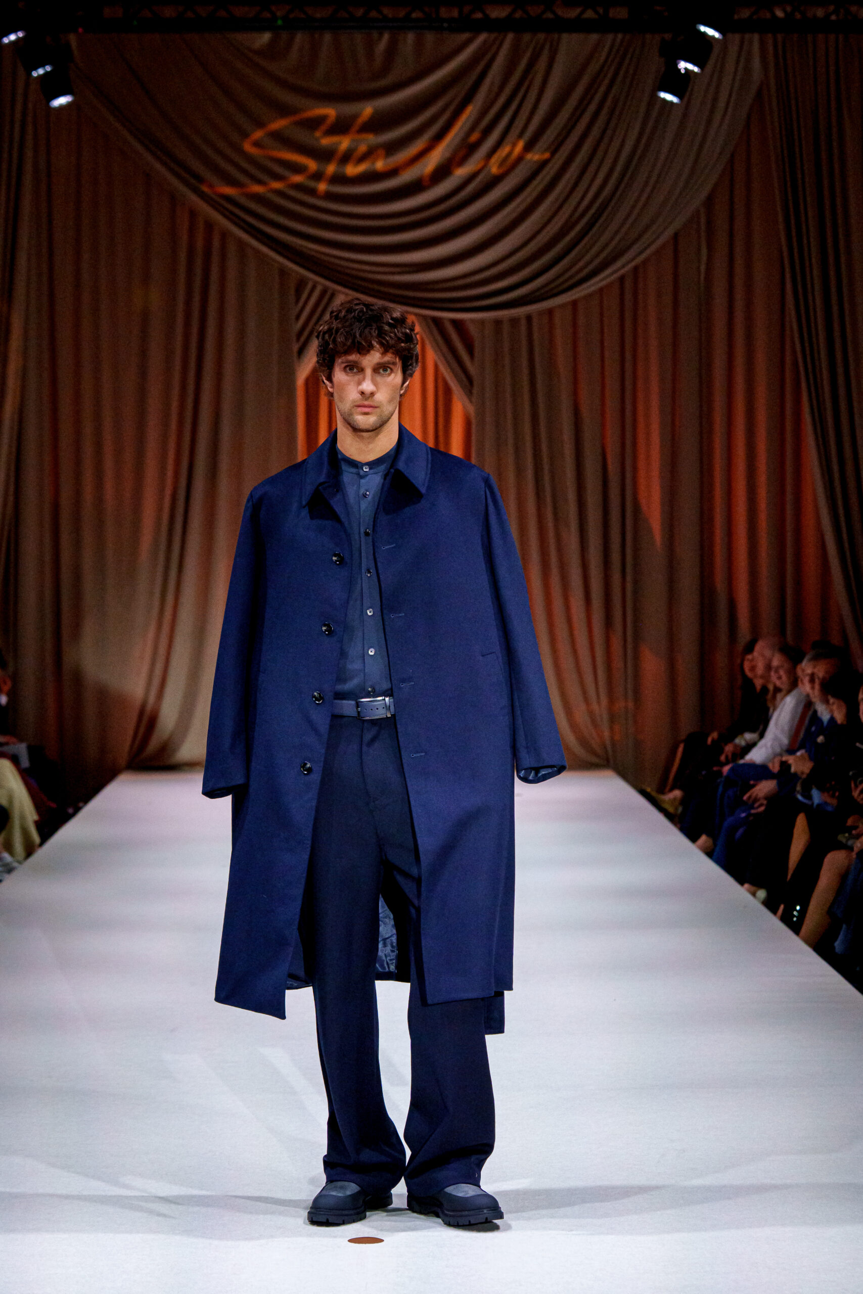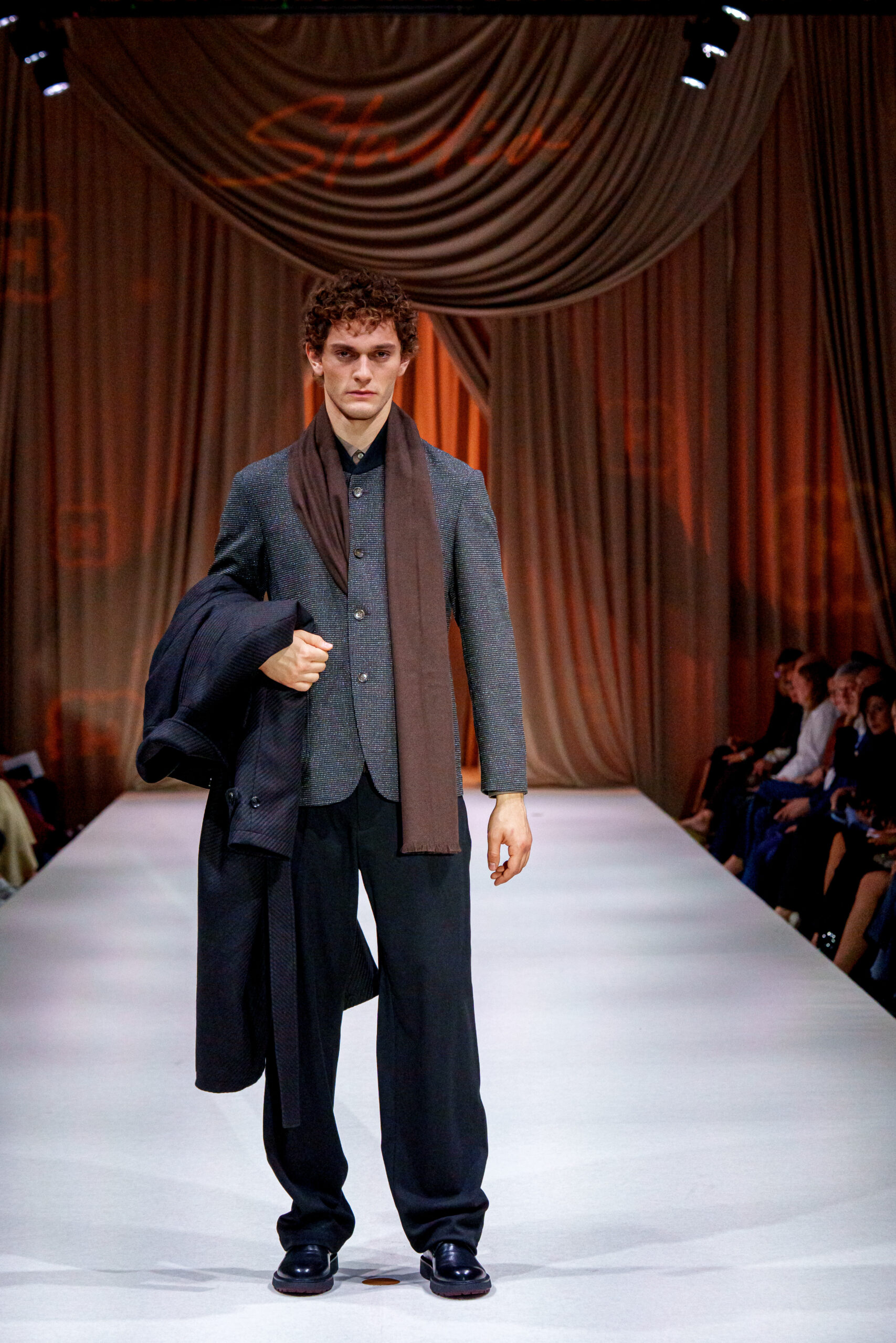 Затем зрителям была представлена коллекция Henderson Studio, дефиле сопровождалось дуэтом танцоров. Ринат Ханджян и солистка МАМТ им. К. С. Станиславского и В. И. Немировича-Данченко Полина Заярная исполнили танец «Движение как диалог стиля». Коллекция Studio вдохновлена итальянской эстетикой 80-х: свободные и непринужденные силуэты, сдержанная цветовая палитра и мягкие ткани стали основой образов. На подиуме были представлены костюмы из премиальных шерстяных тканей, трикотажные изделия из кашемира и шерсти мериноса, пиджаки с контрастным орнаментом, шерстяные пальто, вельветовые куртки-рубашки, куртки, обувь из натуральной кожи и аксессуары.
