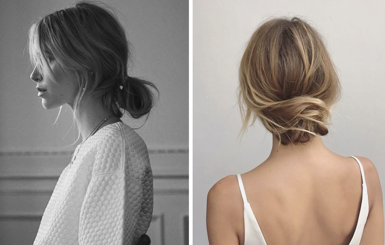 «Сухой» расслабленный низкий или средний пучок — еще одна выигрышная идея для осенней свадебной укладки. Чтобы получилось как на картинке, тщательно просушите волосы, зачешите их назад и нарочито неаккуратно соберите пучок. В финале щедро сбрызните прическу лаком, например, Rockaway от R+Co, или аналогом.