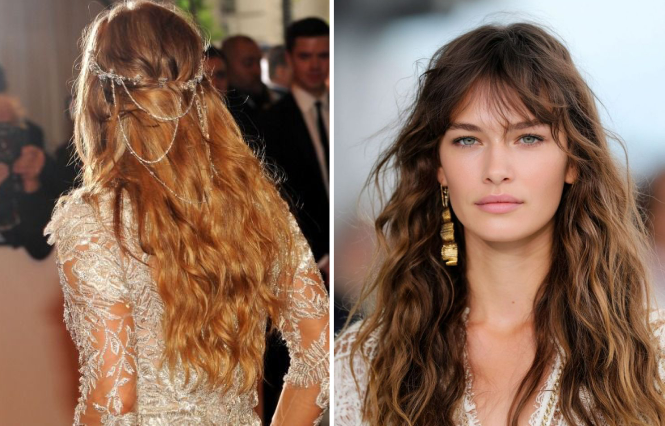 В дождливую погоду также хорошо смотрятся распущенные текстурные локоны. Их, кстати, можно легко трансформировать в течение дня в пучок или собрать в хвост. Перед укладкой важно максимально увлажнить волосы. Я предпочитаю средства Davines из линии Oi для увлажнения и влагозащитный спрей-праймер для блеска More Inside Blow Dry Primer (он обладает термозащитными свойствами, сокращает время сушки феном, помогает создать защитный барьер и снизить воздействие влаги). После укладки горячим инструментом зафиксируйте результат стайлинг-спреем с морской солью, например, Rockaway от R+Co, или другим аналогичным спреем.
