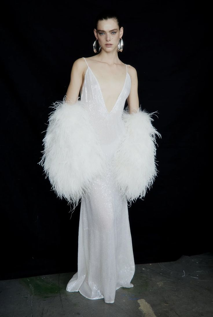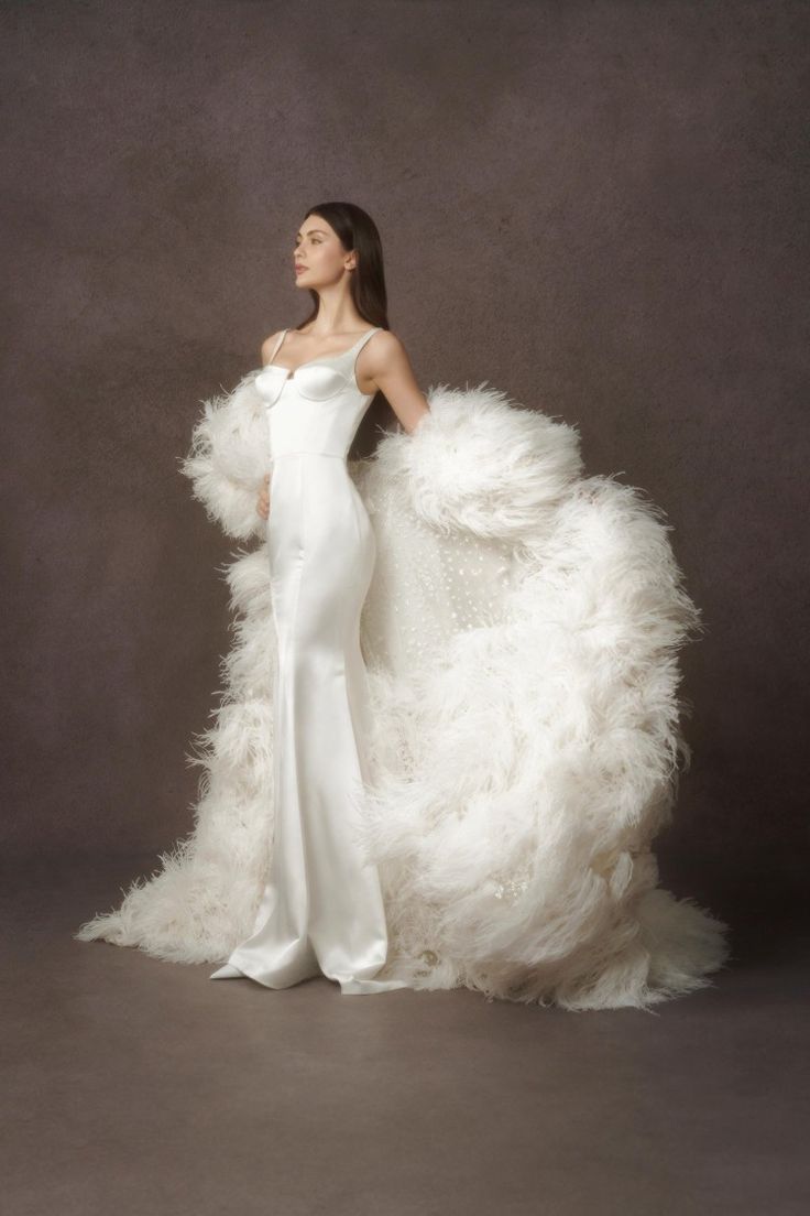 В сезоне весна-лето 2026 кутюрные и свадебные бренды все чаще задействуют перья. Этот акцент добавляет образу невесты романтичной легкости, театрального шика и эффектного объема.