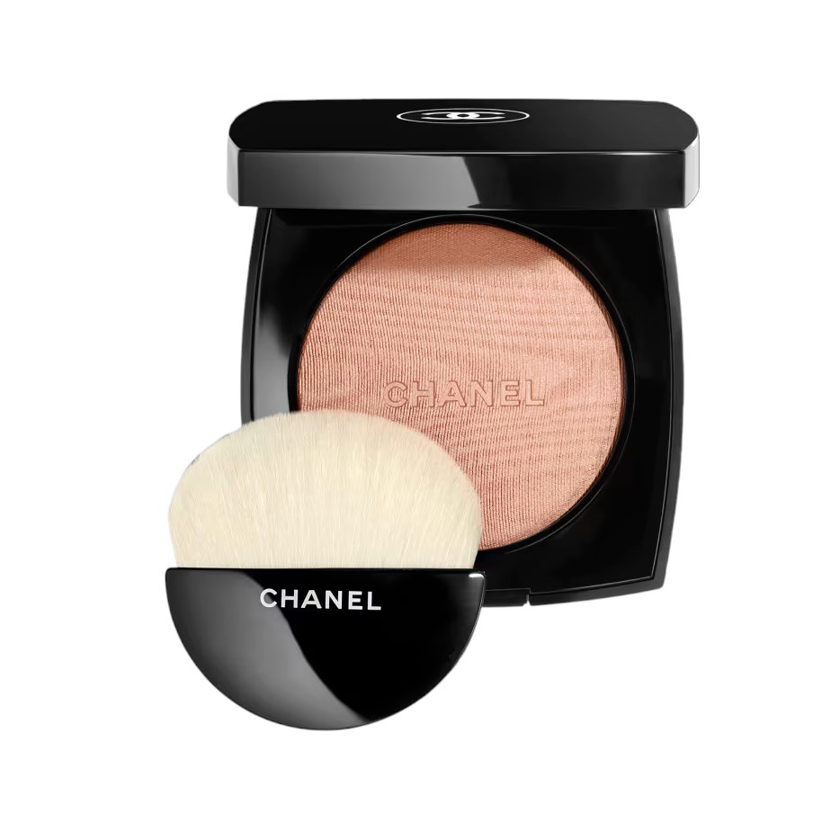 Мерцающая пудра Chanel Poudre Lumière. Я распределяю ее тонким прозрачным слоем по всему лицу. Она создает красивое, благородное свечение. А для большего эффекта наношу на скулы и легкими круговыми движениями закрепляю продукт — получается эффект фотошопа и глянцевый, манящий финиш.