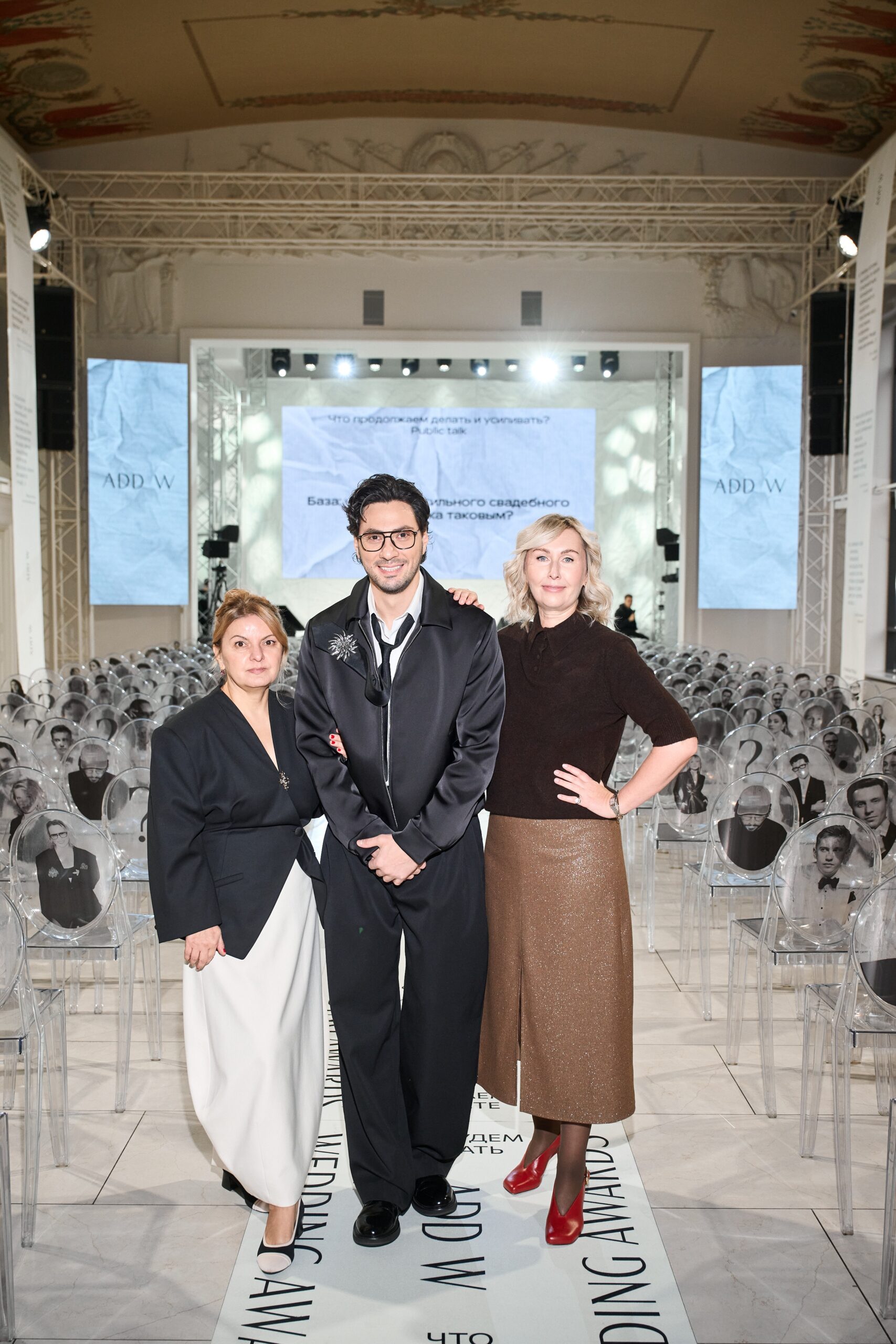 Cоорганизаторы ADD W и Wedding Awards: директор по развитию журнала № 1 о свадьбах Wedding Инна Снижко и генеральный директор Елена Бурякова. Ведущий ADD W Руслан Исмаилов. Фото: Сергей Фарковец