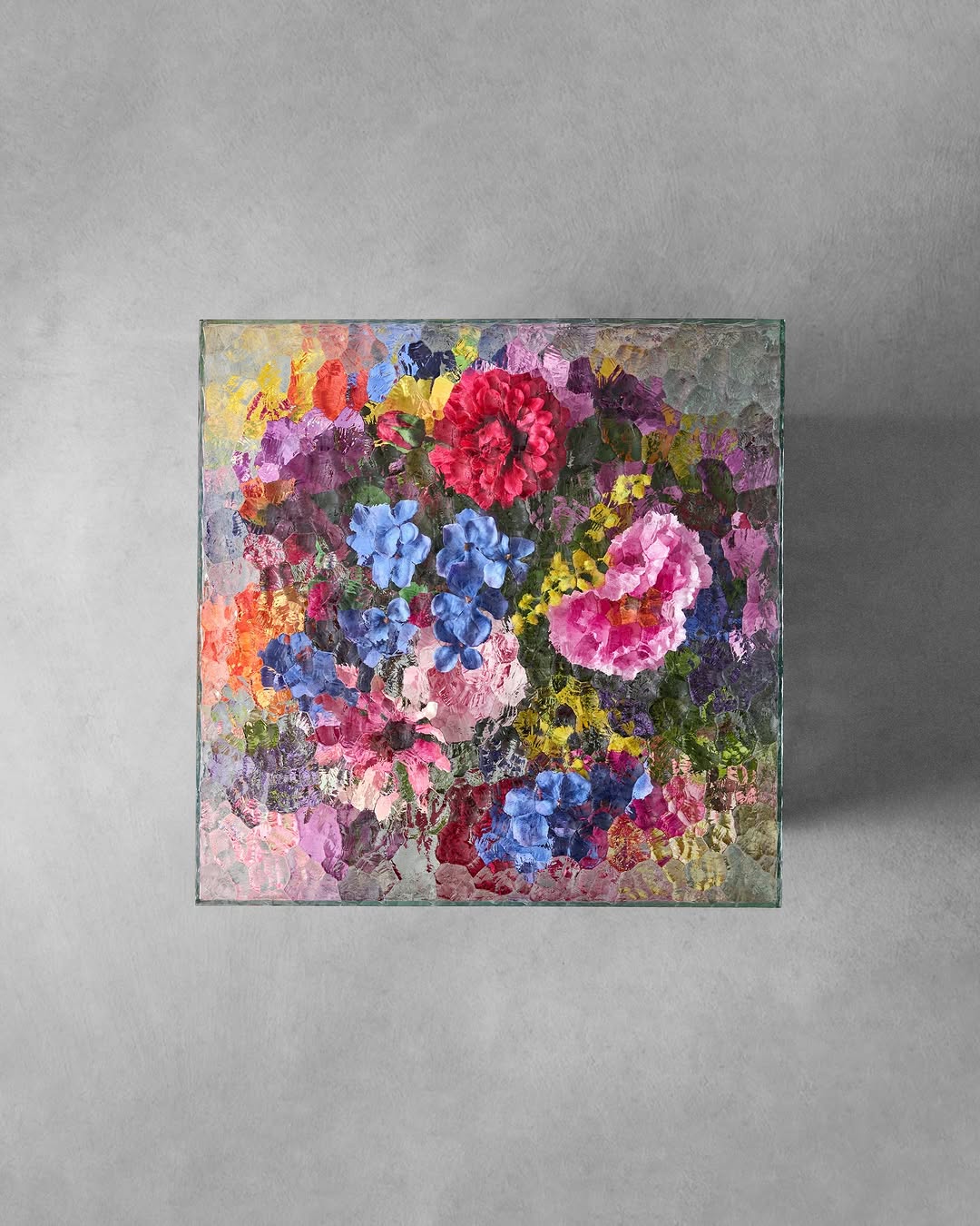 Показывают всю яркость и фактурность композиции, но при этом фиксируют ее в строгой геометрии, превращая в лаконичный арт-объект. Фантазийные рельефы на стекле только усиливают эффект.