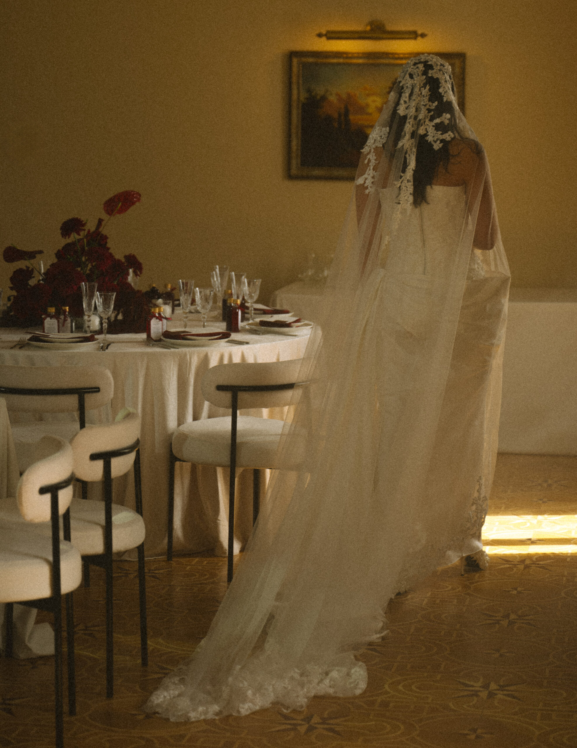 Как только мы увидели Villa Michetti, то влюбились, поэтому никаких площадок больше не рассматривали. Не хотелось выдумывать что-то театрально-художественное: в конце концов, свадьба — это долгожданный красивый праздник. Мы хотели, чтобы всем было комфортно и весело — так и получилось. Но я отыгралась на цветовой палитре, потому что обожаю бордовый, так что 50% декора было именно этого оттенка.