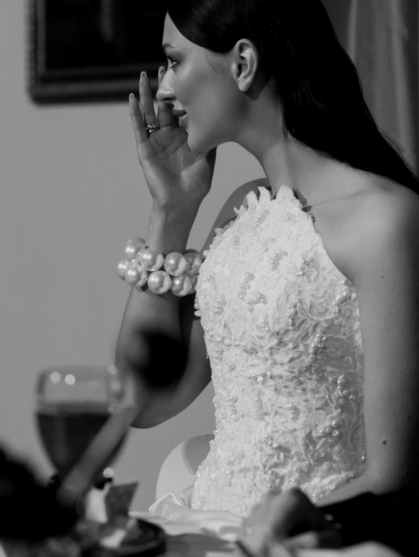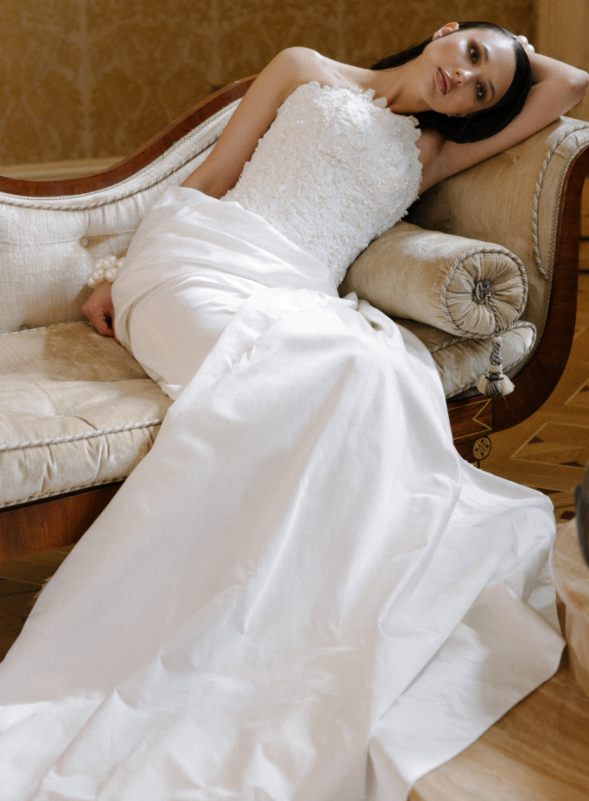 Мне не хотелось выглядеть фигуркой на свадебном торте: не хотелось всех банальностей, которые приходят в голову, когда люди думают о невесте. Я — это гладкие волосы, темные губы и достаточно яркий макияж, поэтому мы интегрировали это в мой свадебный образ, и я чувствовала себя максимально комфортно. Мы работали со стилистом, сразу друг друга услышали, почувствовали, и это был один из самых незабываемых этапов подготовки к свадьбе. Каждый образ мы собирали по маленьким деталям.