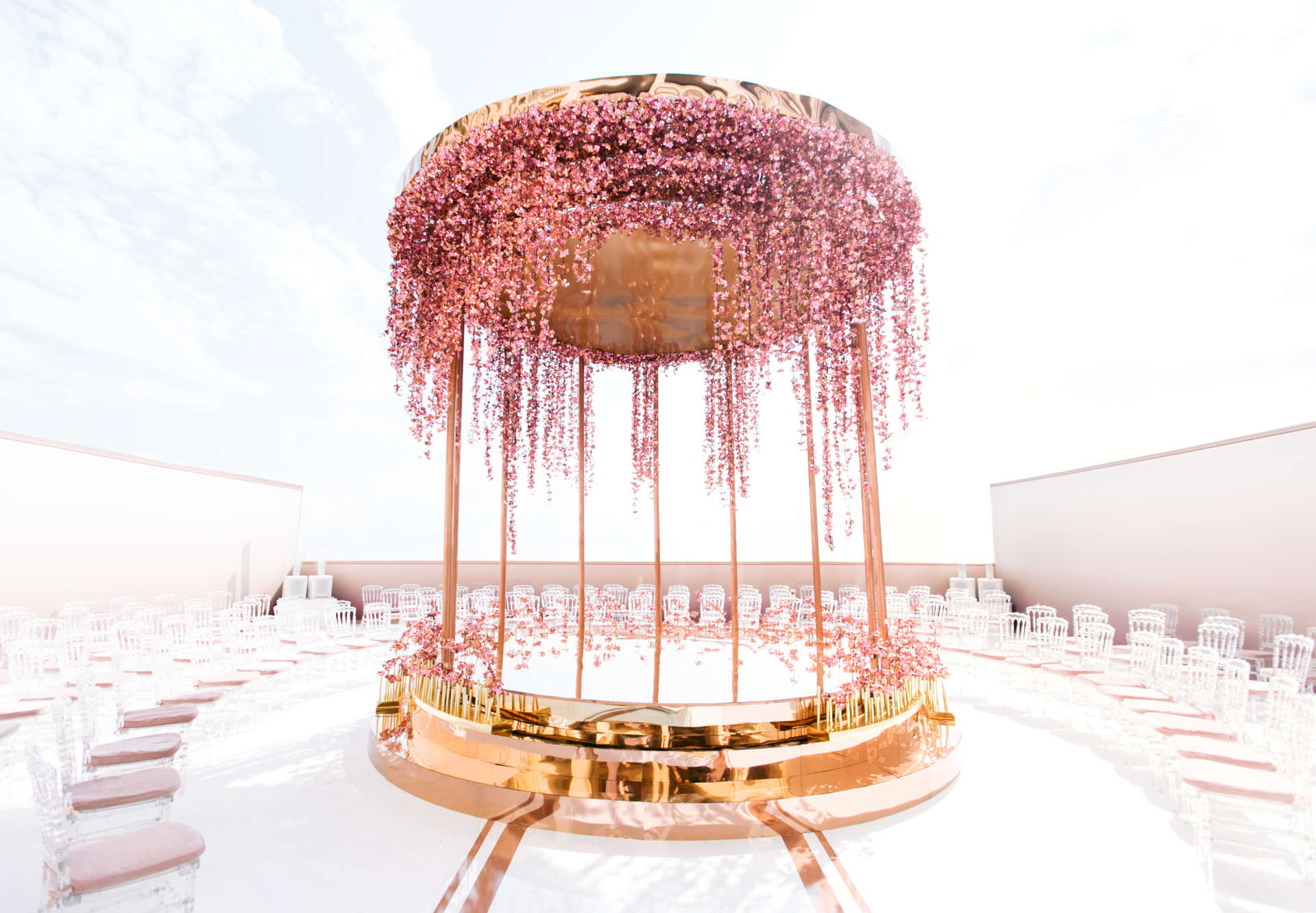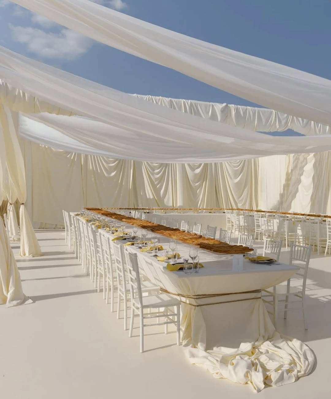 Торжества в стиле знаковых брендов создаются и сейчас — например, свадьба с церемонией, вдохновленной показом Jacquemus. «Проект получился ярким, c идеальным повторением оформления показа, но ему не хватило переработки, которая сейчас в отличие от 2012−2015 годов необходима», — говорят эксперты.