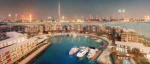 Подсвеченные сады и бассейны напоминают о типичных итальянских морских деревушках, вписывая средиземноморский ландшафт в природу побережья Персидского залива.