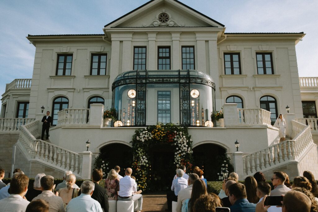 Вам не подходят локации, где могут параллельно с вашей свадьбой проходить другие мероприятия. Лучше всего выбирать площадки, где будет только ваша свадьба. Выездная регистрация — идеальный вариант, особенно если свадьба планируется на тёплое время года. Там будете только вы с ним, ваши лучшие друзья и семья. И никого больше.