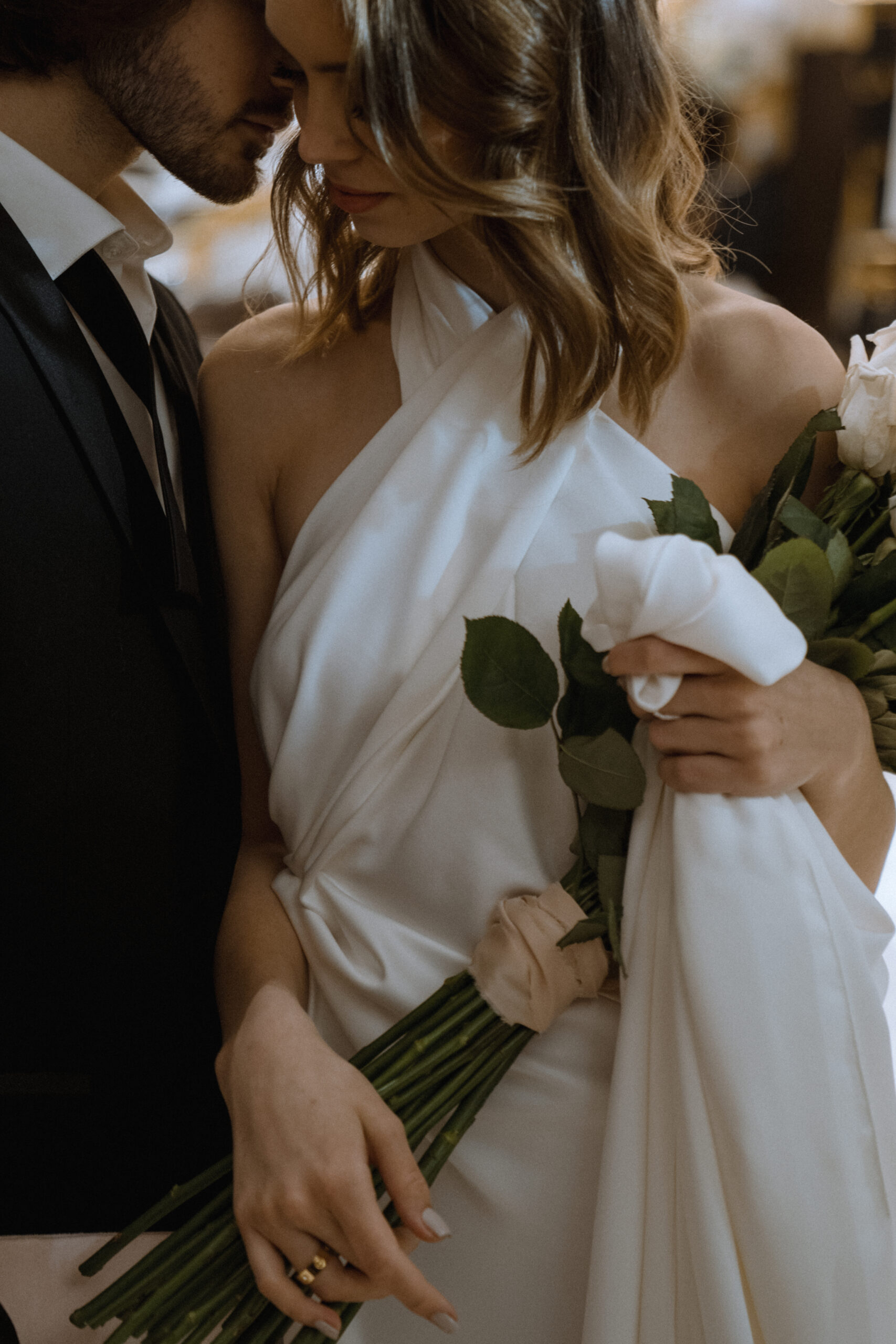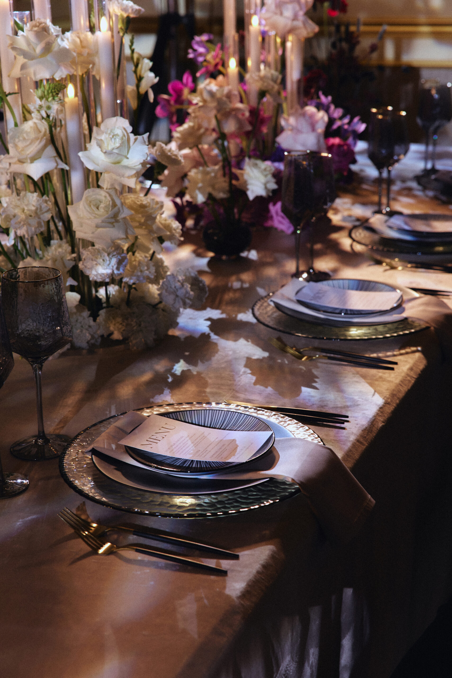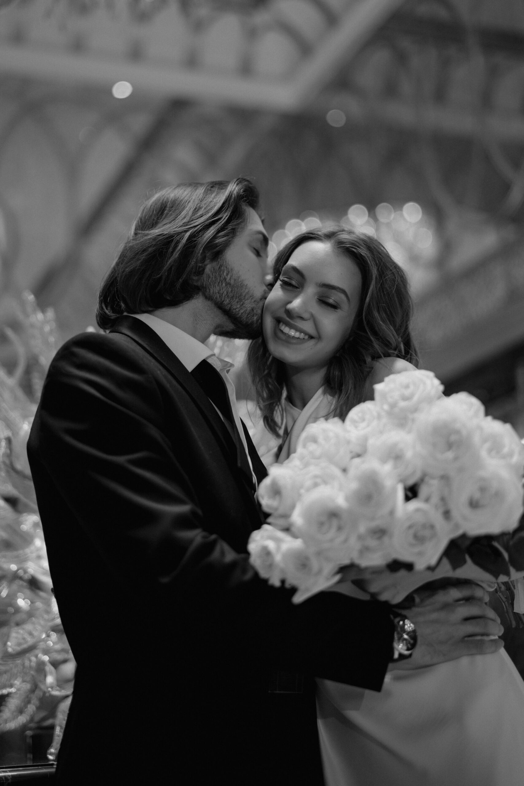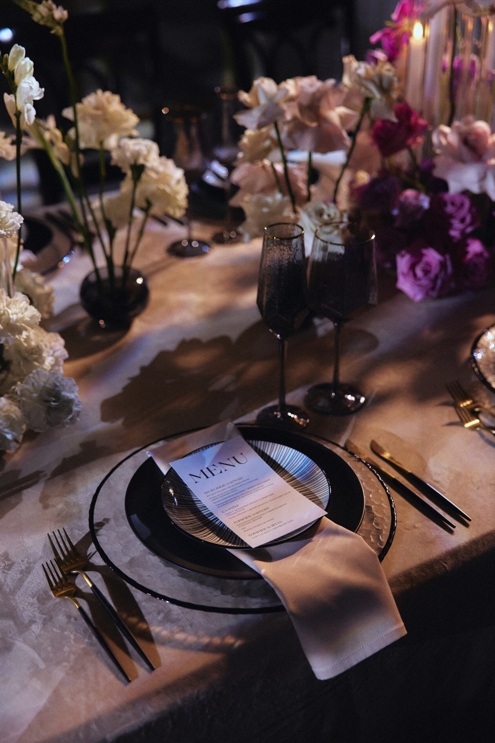 Интерьер «Пушкина» легко трансформируется под любую концепцию: от вечера в белоснежной эстетике с живыми цветами и барочной музыкой до современного минимализма с акцентом на свет и фактуру. Из окон же открывается вид на набережную Мойки: течет река, медленно двигаются лодки — кажется, будто сам город подыгрывает счастью молодоженов.