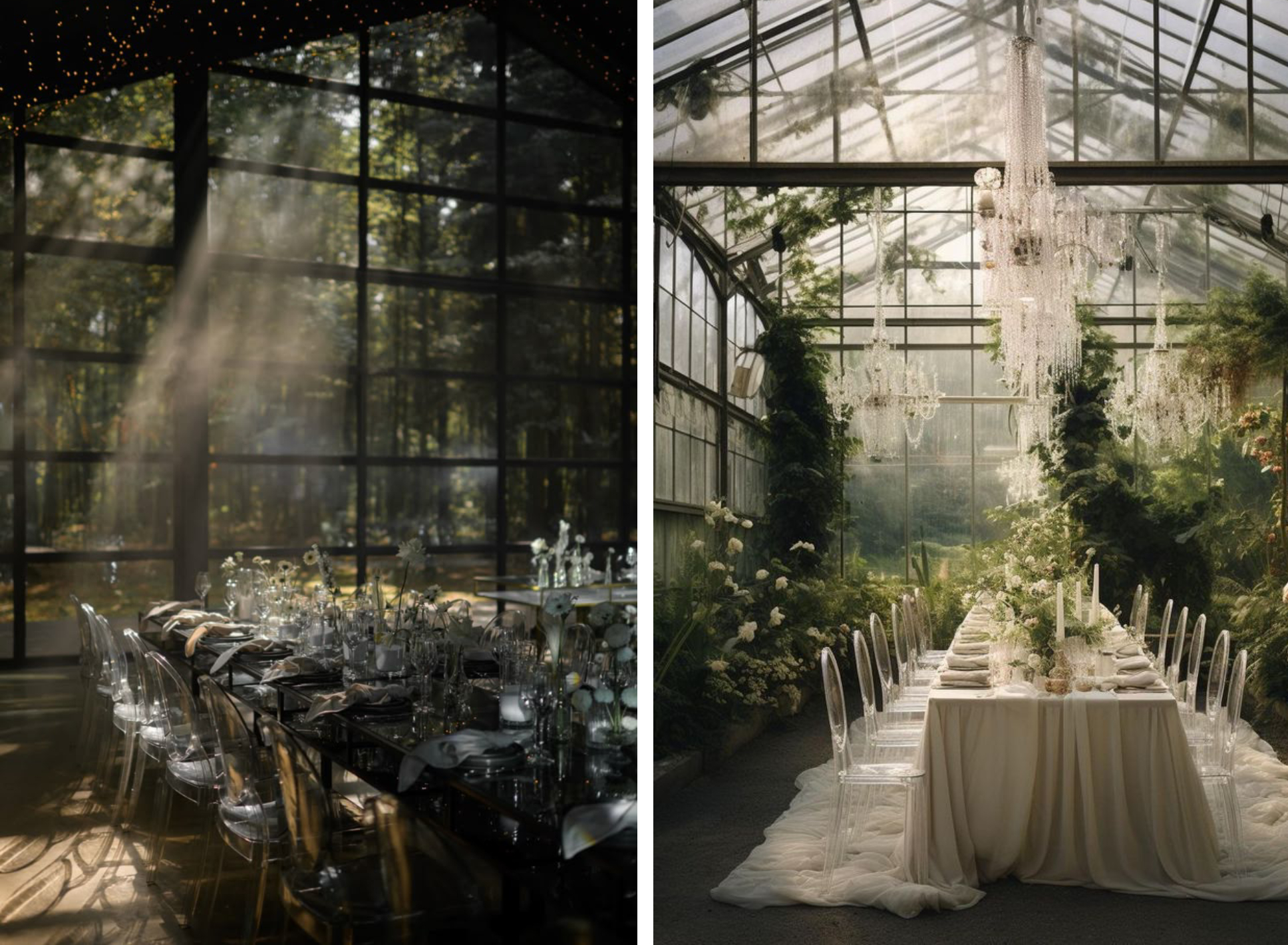 Оранжерея — интересный вариант для тех, кто хочет ощутить весеннее настроение даже осенью. Экзотические растения создают ощущение вечного лета. Кстати, в случае с такой локацией можно существенно сэкономить на декоре. Стеклянные стены пропускают достаточно света и защищают от холода, вечером можно дополнить помещение маленькими фонариками.