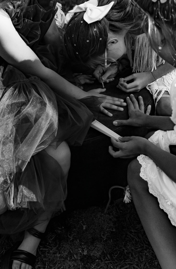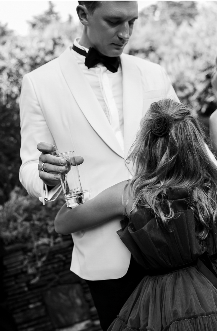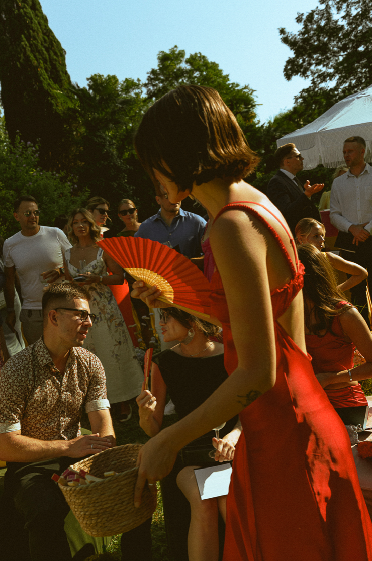 Фуршет проходил на траве под летними зонтиками. Все гости были в ярких нарядах, такой и получилась серия — яркой! Все фотографии в ней сочетаются по смыслам, какие-то больше, а какие-то на очень тонких моментах. Саму серию я собрала довольно быстро. Хватило трех подходов, чтобы дополнить или убрать лишнее.
