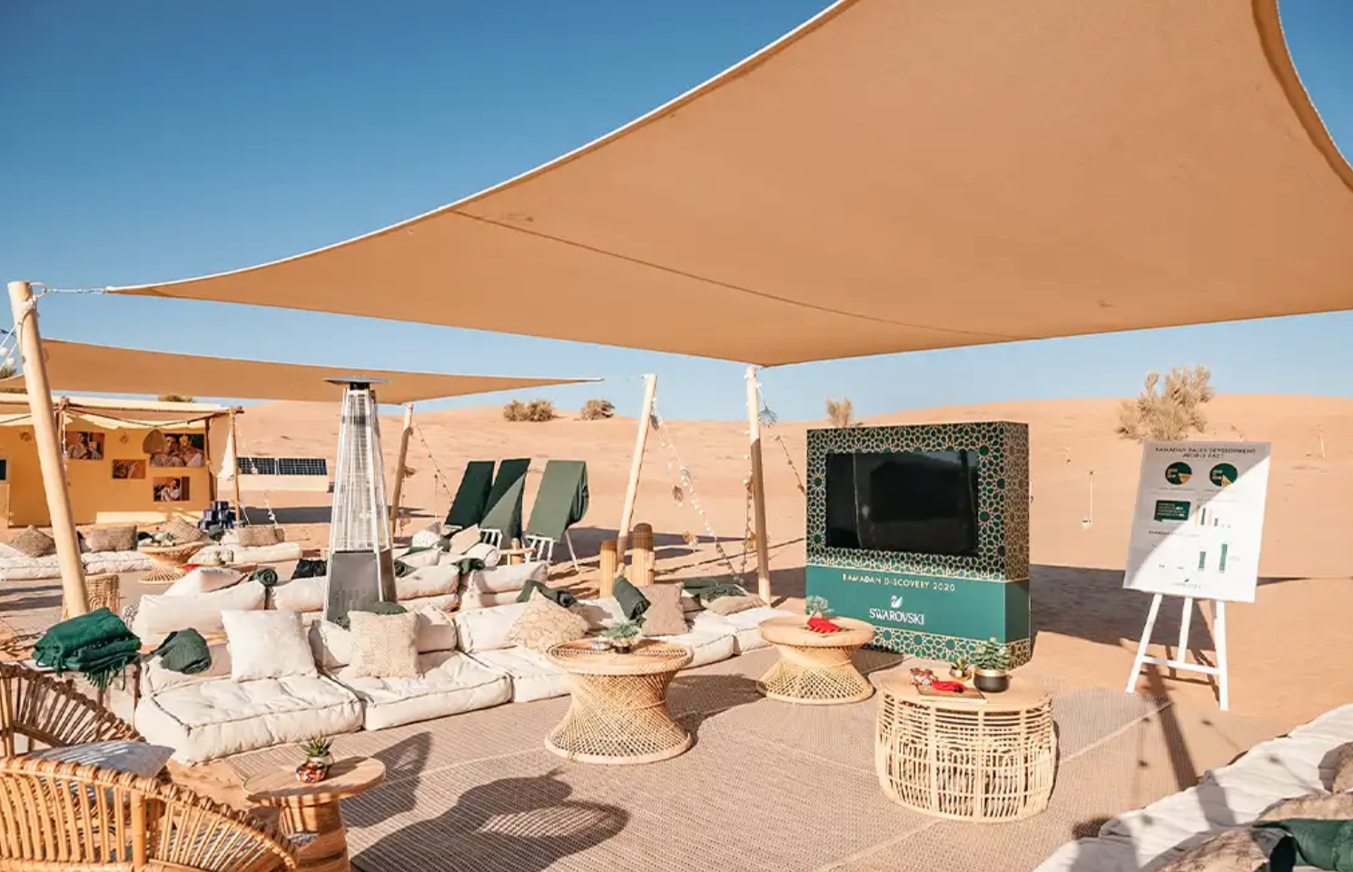 Наша цель — сочетание аутентичных, природных нюансов пустыни с комфортом и сдержанной роскошью. От великолепного оформления площадок, тщательно подобранных живых выступлений и меню, созданных нашими шеф-поварами — каждая деталь продумана. Мы предоставляем персонализированные услуги, декор под каждое торжество и четкую логистику.