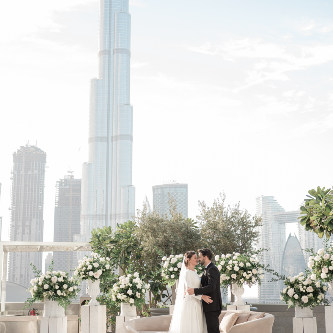 Мы предлагаем ряд свадебных пакетов, которые охватывают все, от кейтеринга и напитков до индивидуального свадебного торта и проживания в одном из наших роскошных люксов для молодоженов. Что касается развлечений, пары могут выбрать живую музыку, будь то струнный квартет для церемонии или диджей на вечер. Также мы предлагаем выступление арабских танцоров или музыкантов, и даже фейерверки. Одна из самых эффектных услуг, которую мы предлагаем, — синхронизация шоу фонтанов на площадках Armani/Pavilion и Palace Downtown. Эти дополнительные акценты могут сделать день поистине необычным как для пары, так и для их гостей.