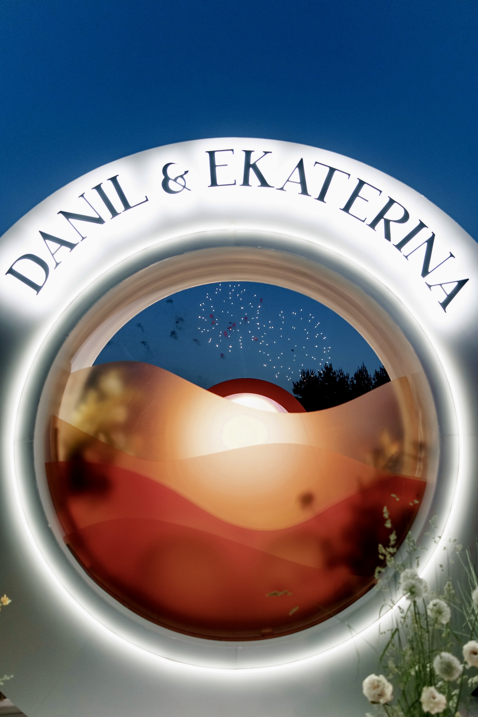 А потом в ее жизни появился будущий муж — и совпадение? — Михаил. По их красивой истории любви, в которой большое место занимал медведь, мы написали сказку и визуализировали ее в виде мультика. А в зоне церемонии появился арт-объект — не просто для красоты, а как символ их отношений.