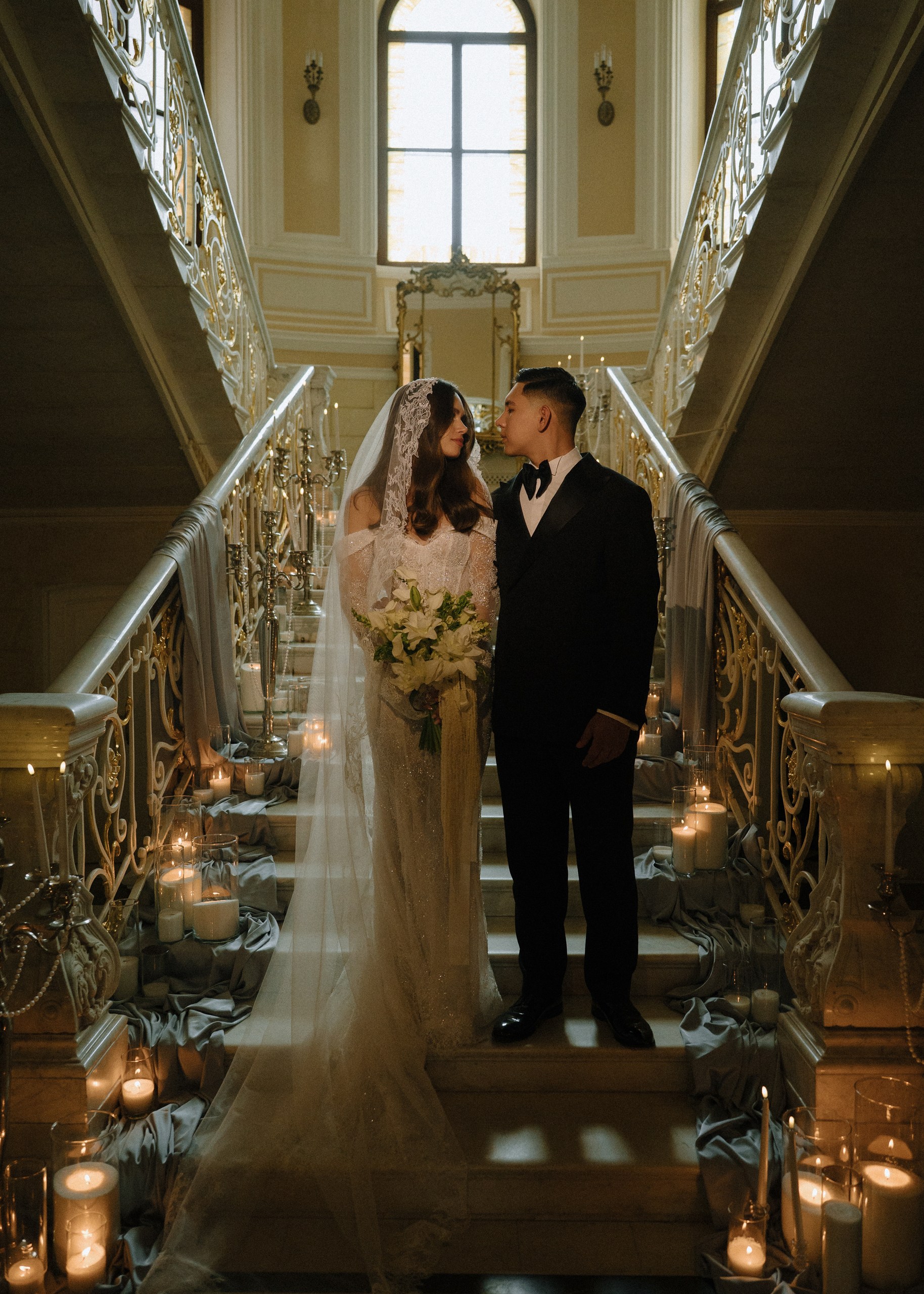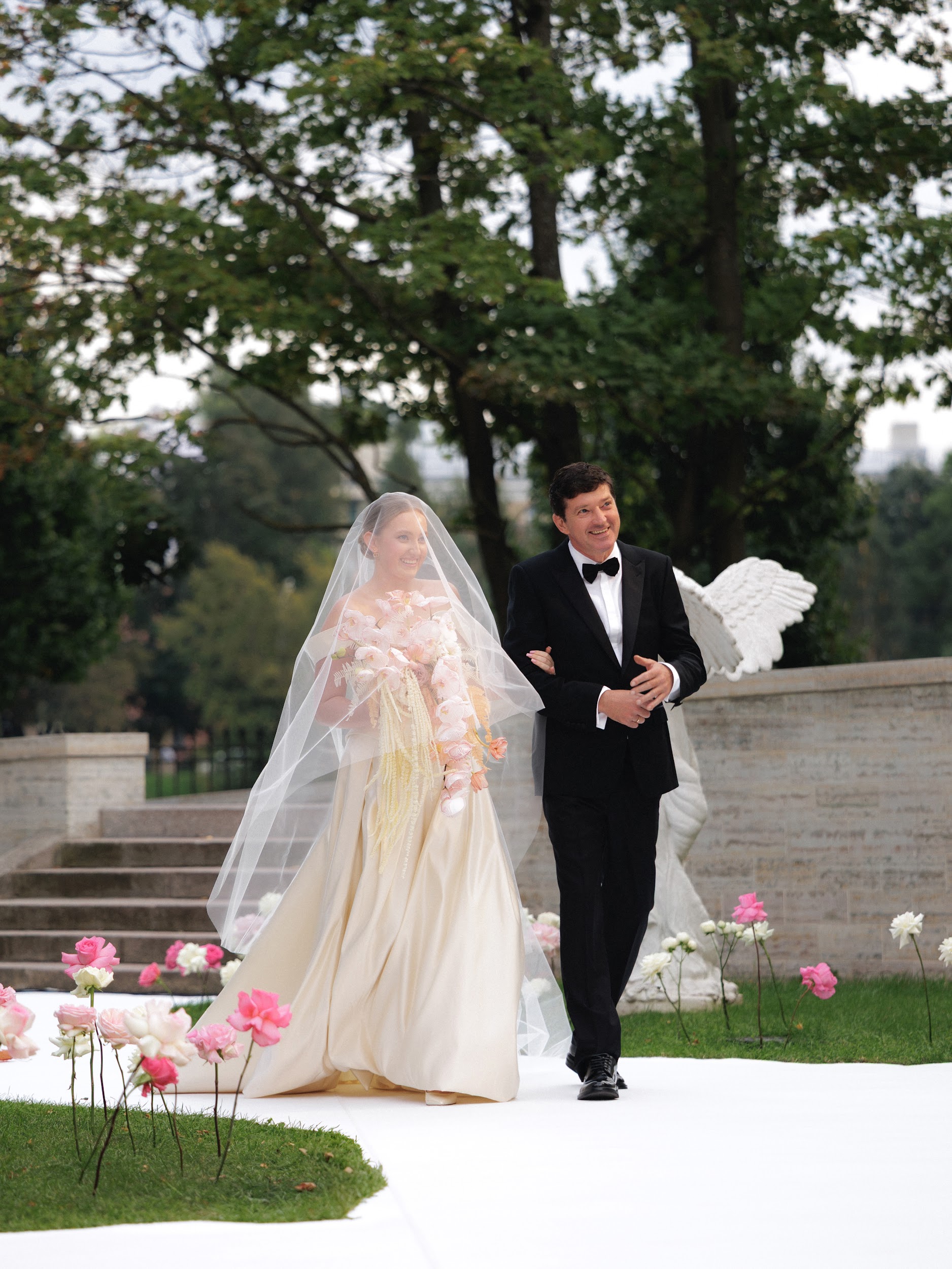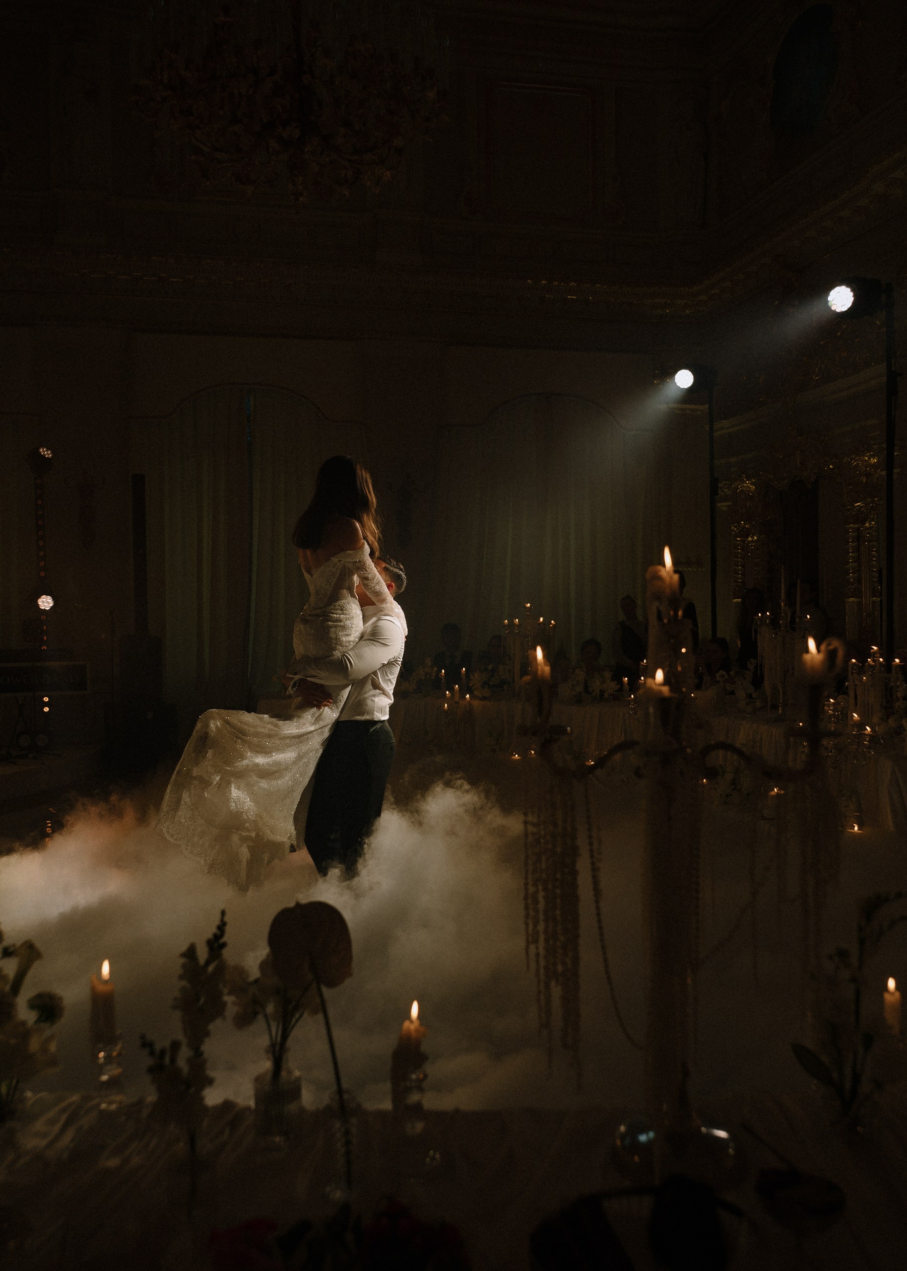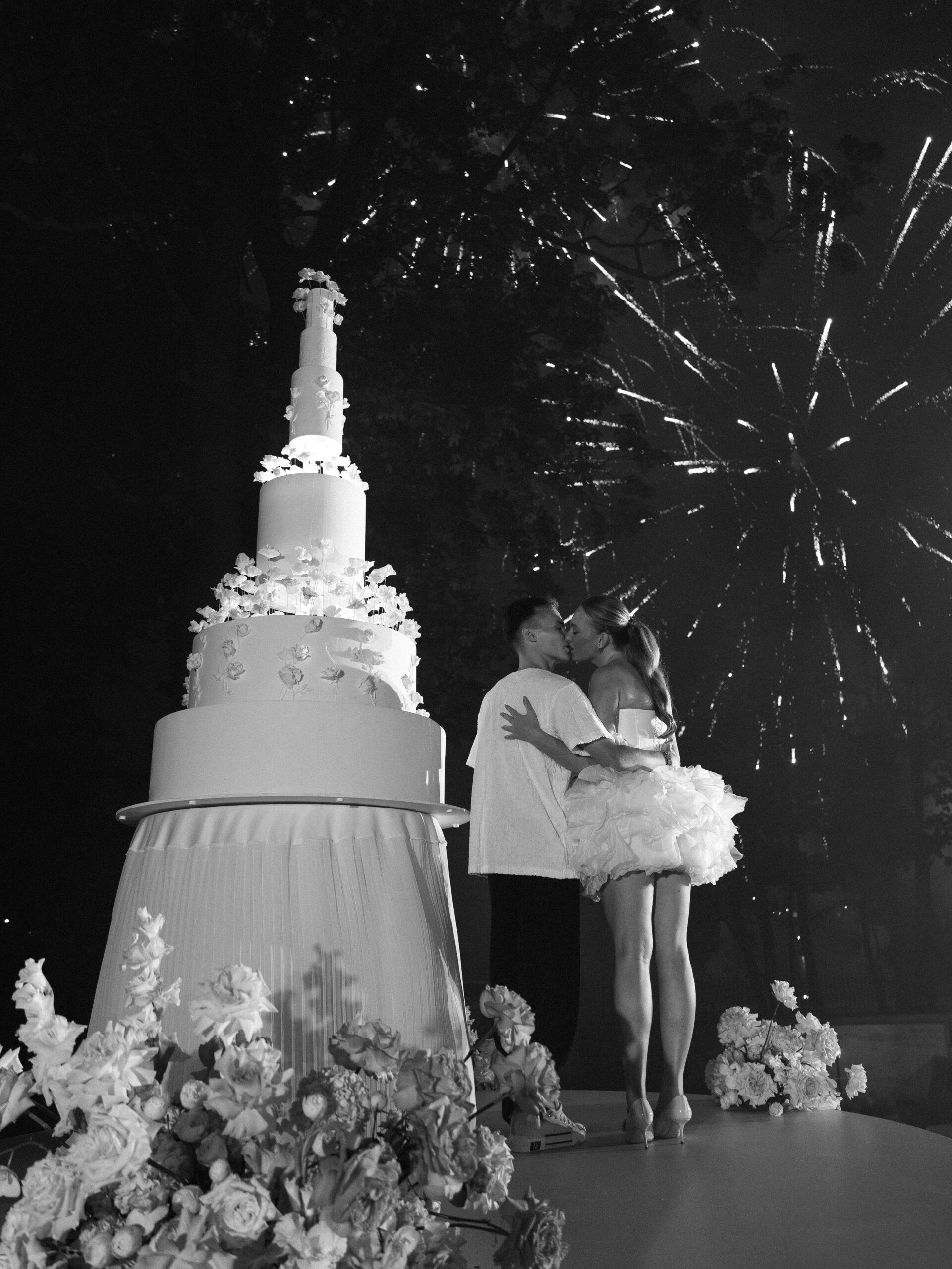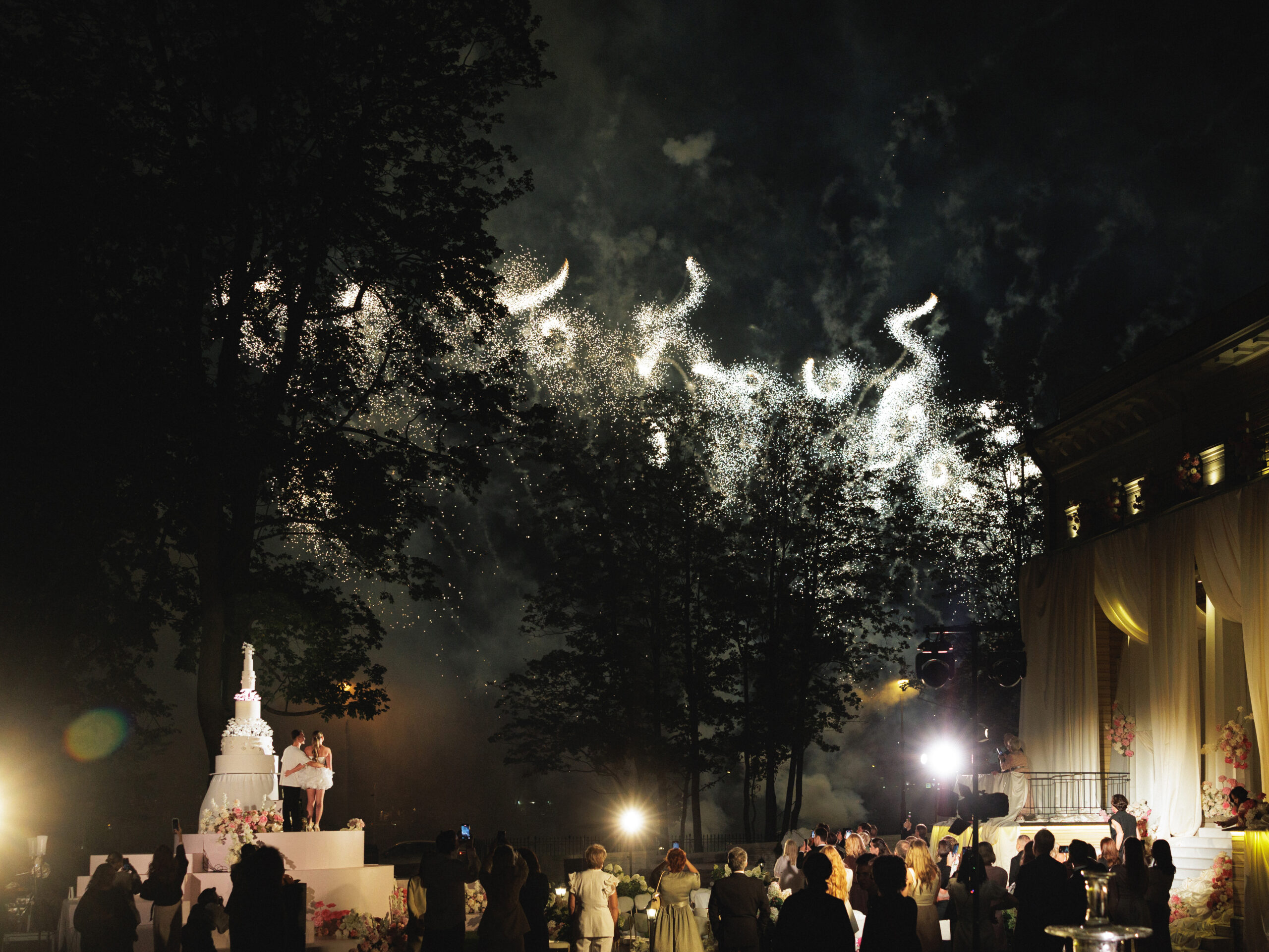 На фоне величественных фасадов гостям подали свадебный торт, а кульминацией события стал масштабный, ослепительный салют, осветивший небо над всем городом.
