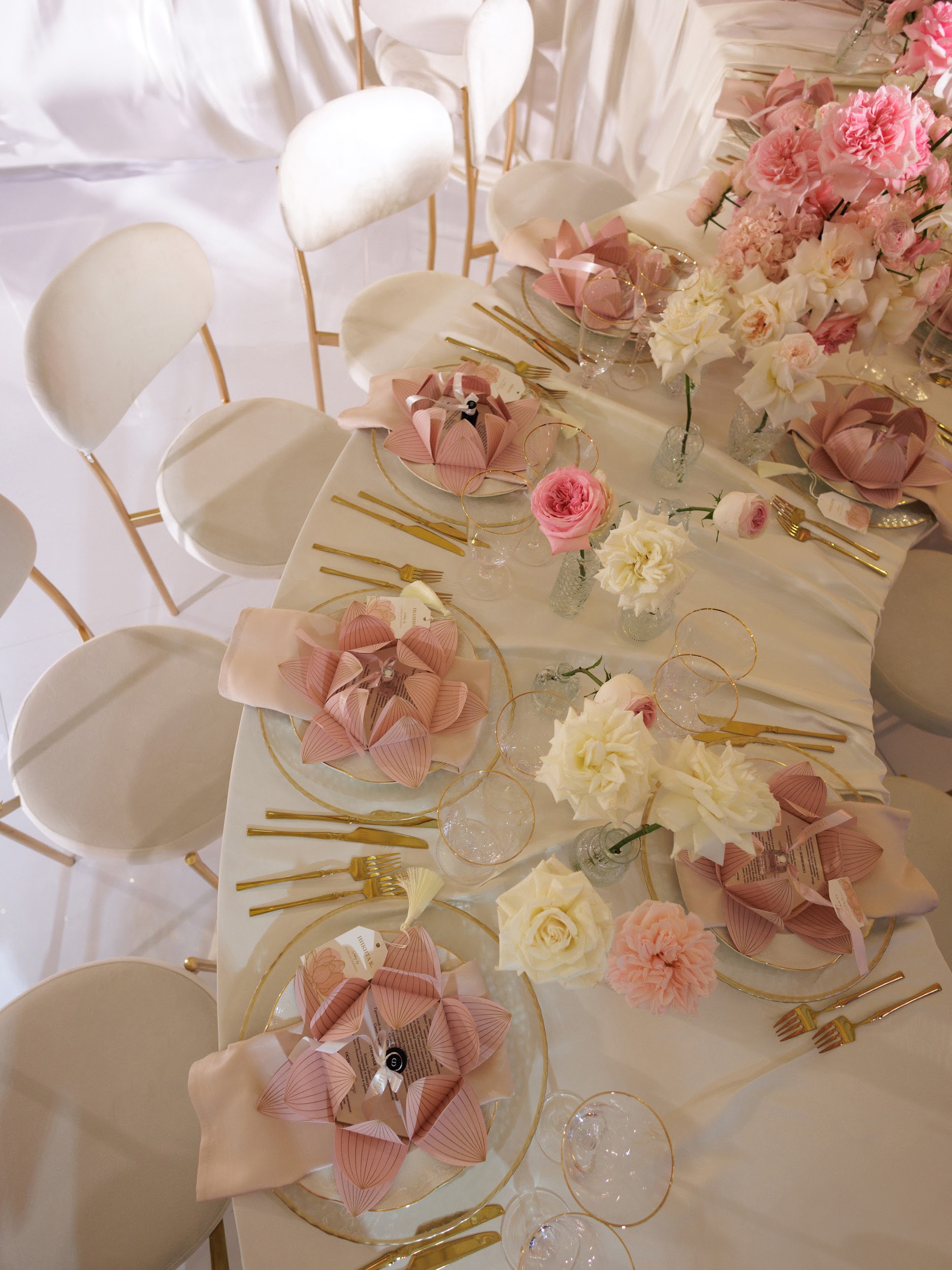 Для создания концепции церемонии мы обратились к богатой символике Востока. Нашим вдохновением стал китайский цветок, который испокон веков считается олицетворением глубокой любви и незыблемых семейных уз. В виде него была спроектирована сама форма зоны церемонии. Каждый лепесток символизировал отдельную грань чувств, которые объединяют семьи в единое целое.