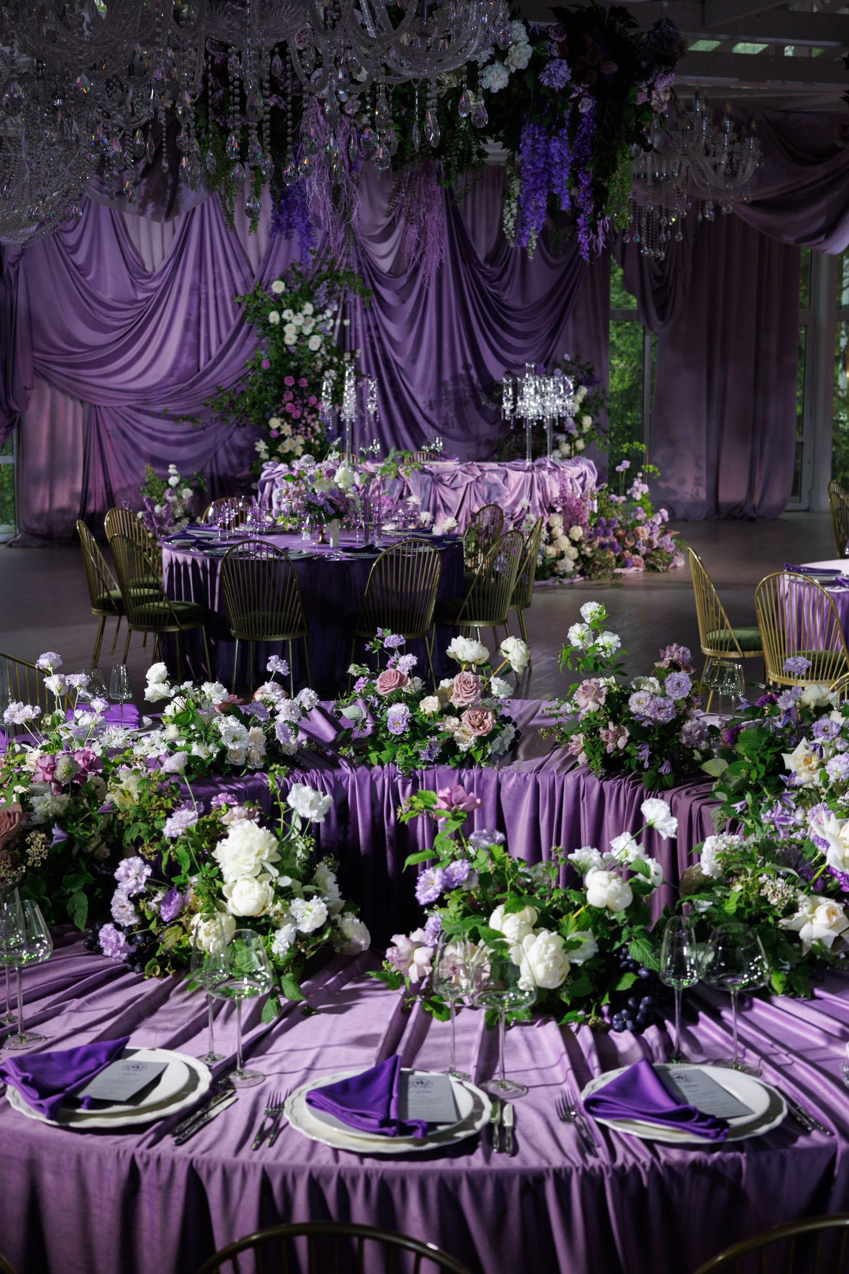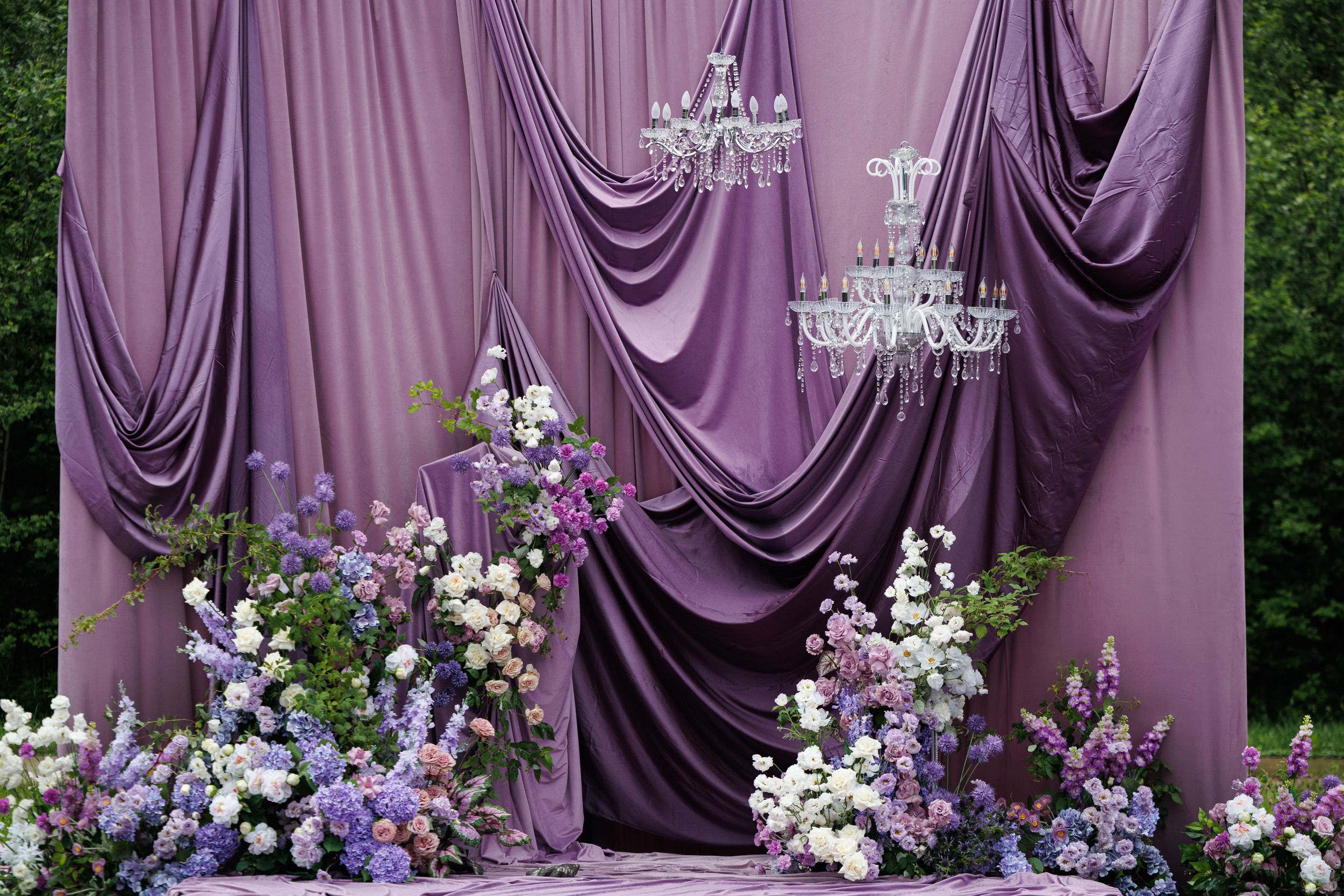 Текстиль задает тон всей палитре свадьбы. Флористика, как акцент, добавляет визуал.