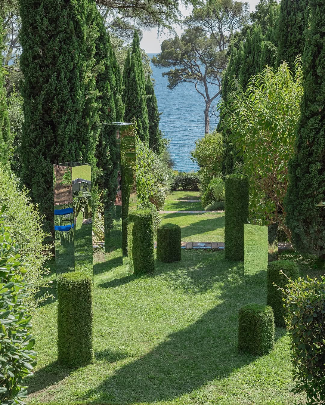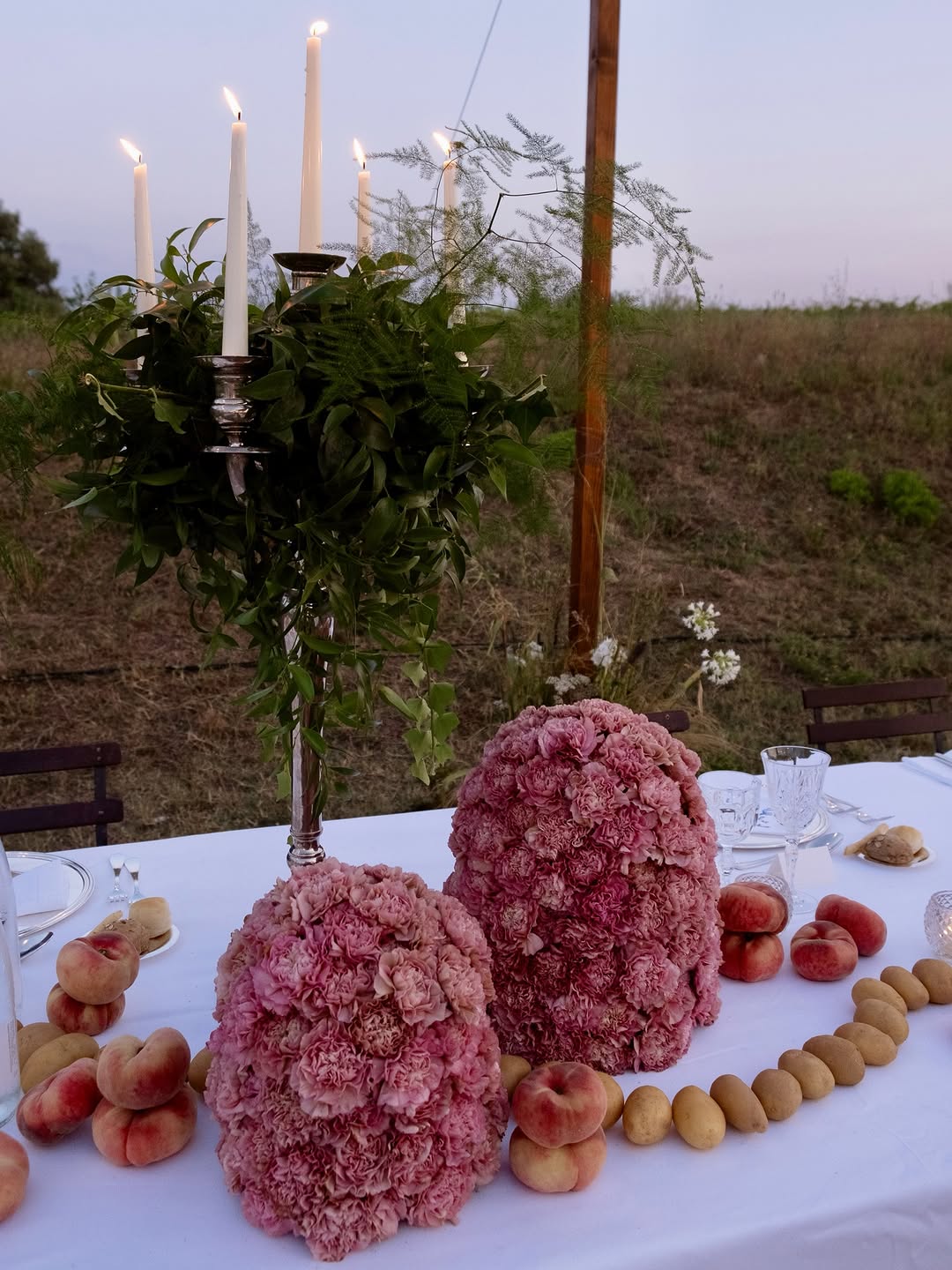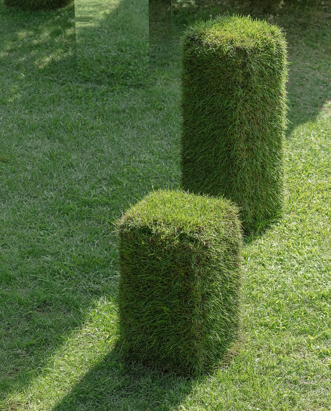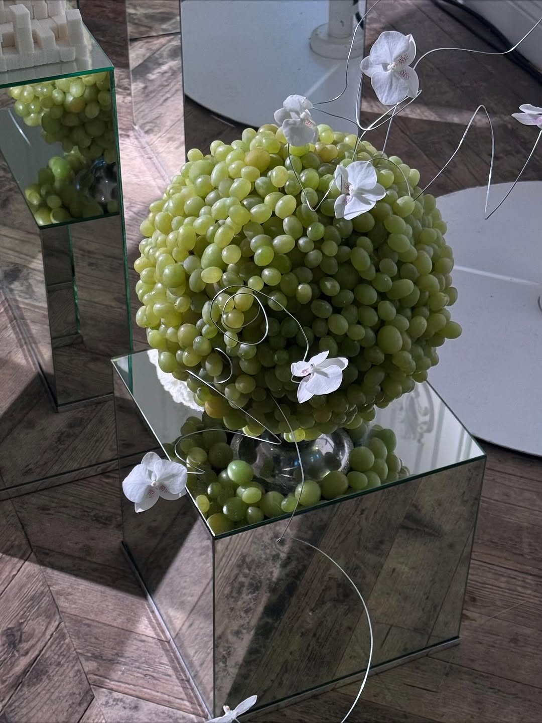 Цветы, фрукты и природные материалы превращаются в четкие геометрические фигуры — кубы, шары, колонны, пирамиды. Это не флористика в привычном смысле, а объектные инсталляции, встроенные в ландшафт или архитектуру площадки. В цветочном варианте они формируются из цветков с плотной фактурой — хризантем, гвоздик, васильков, собранных в «массу».