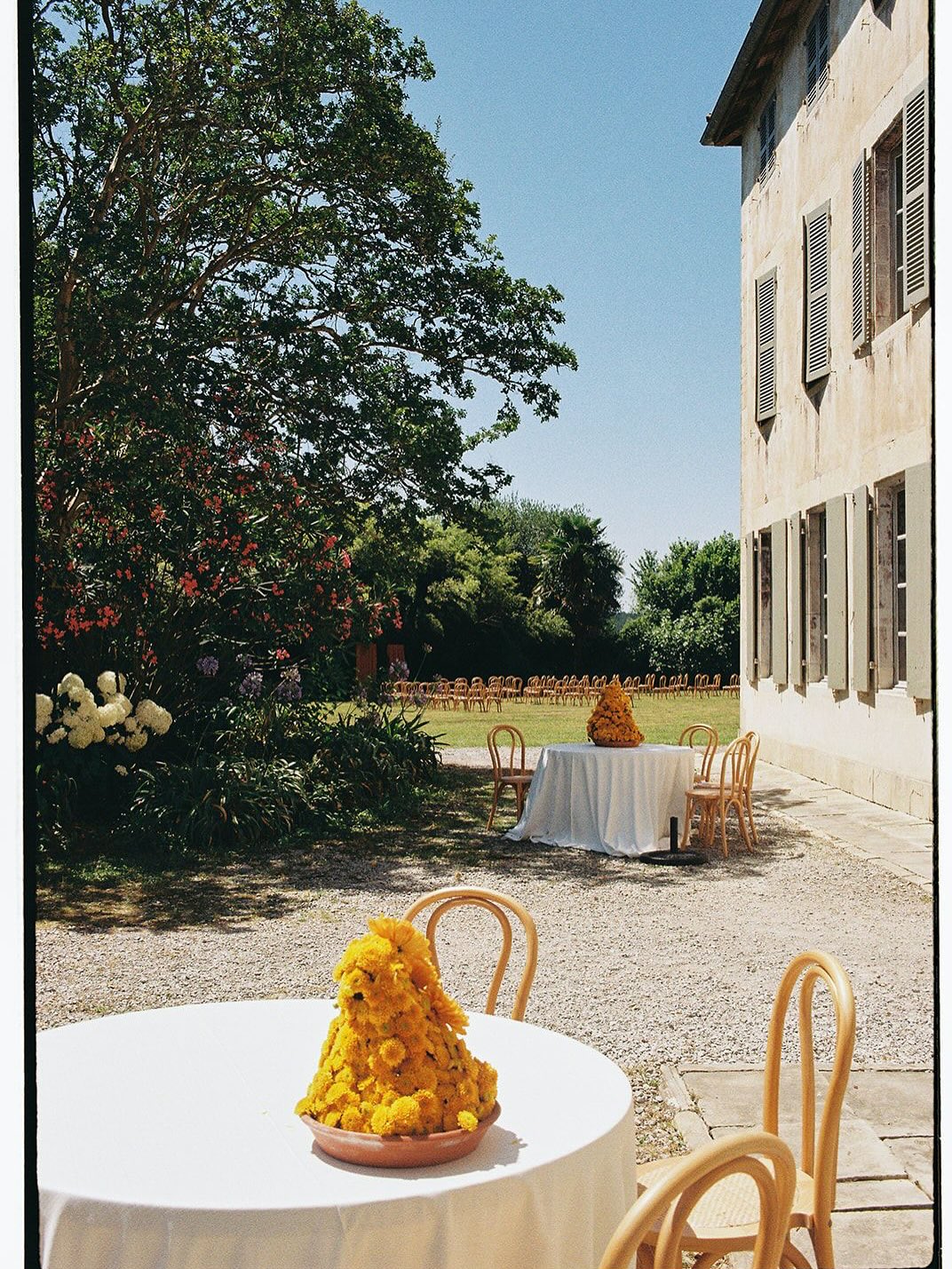 Кроме того, по-прежнему не сдает своих позиций фактурная трава, которую мы еще не раз увидим на торжествах в самых разных проявлениях и формах. И в том числе геометрических.