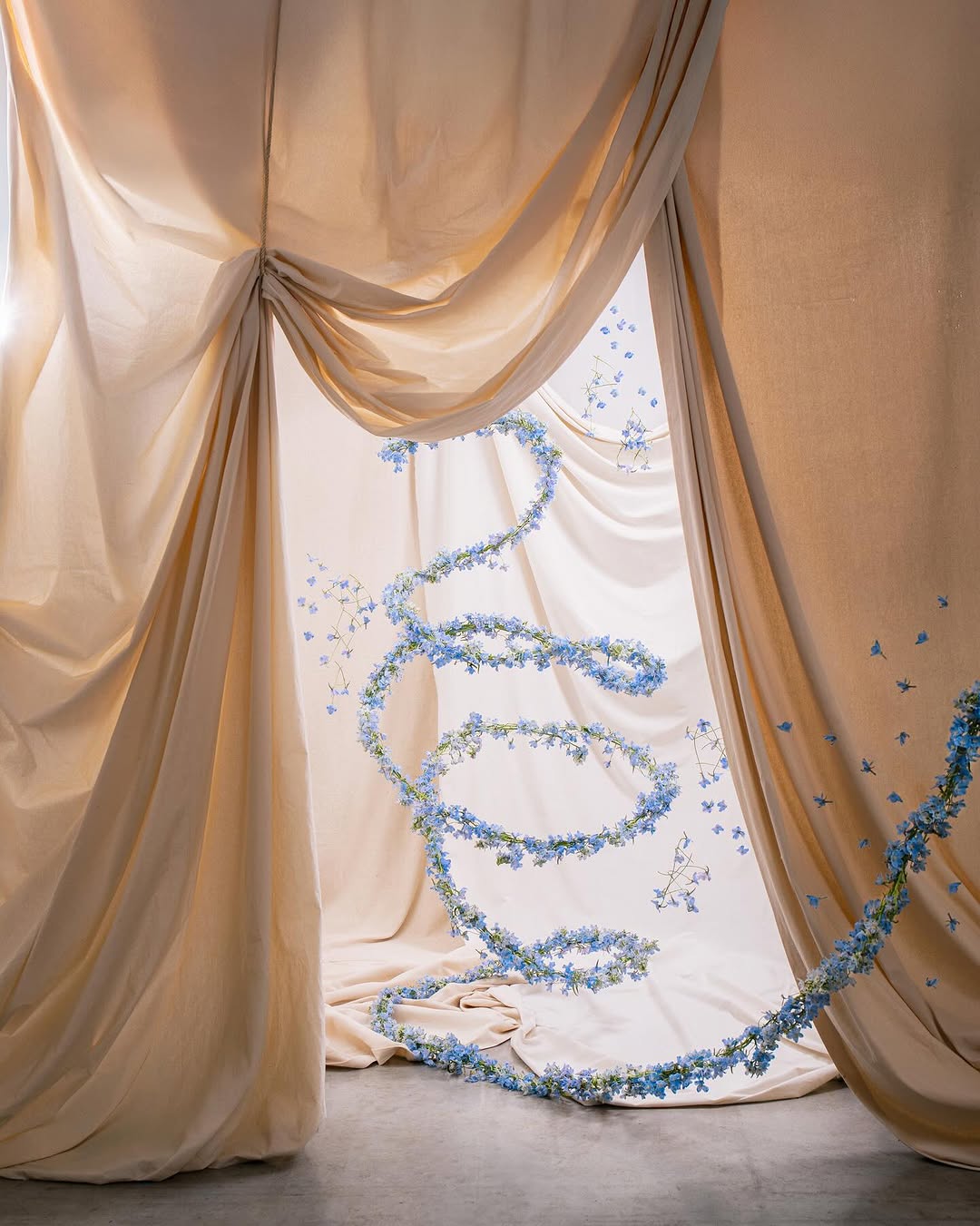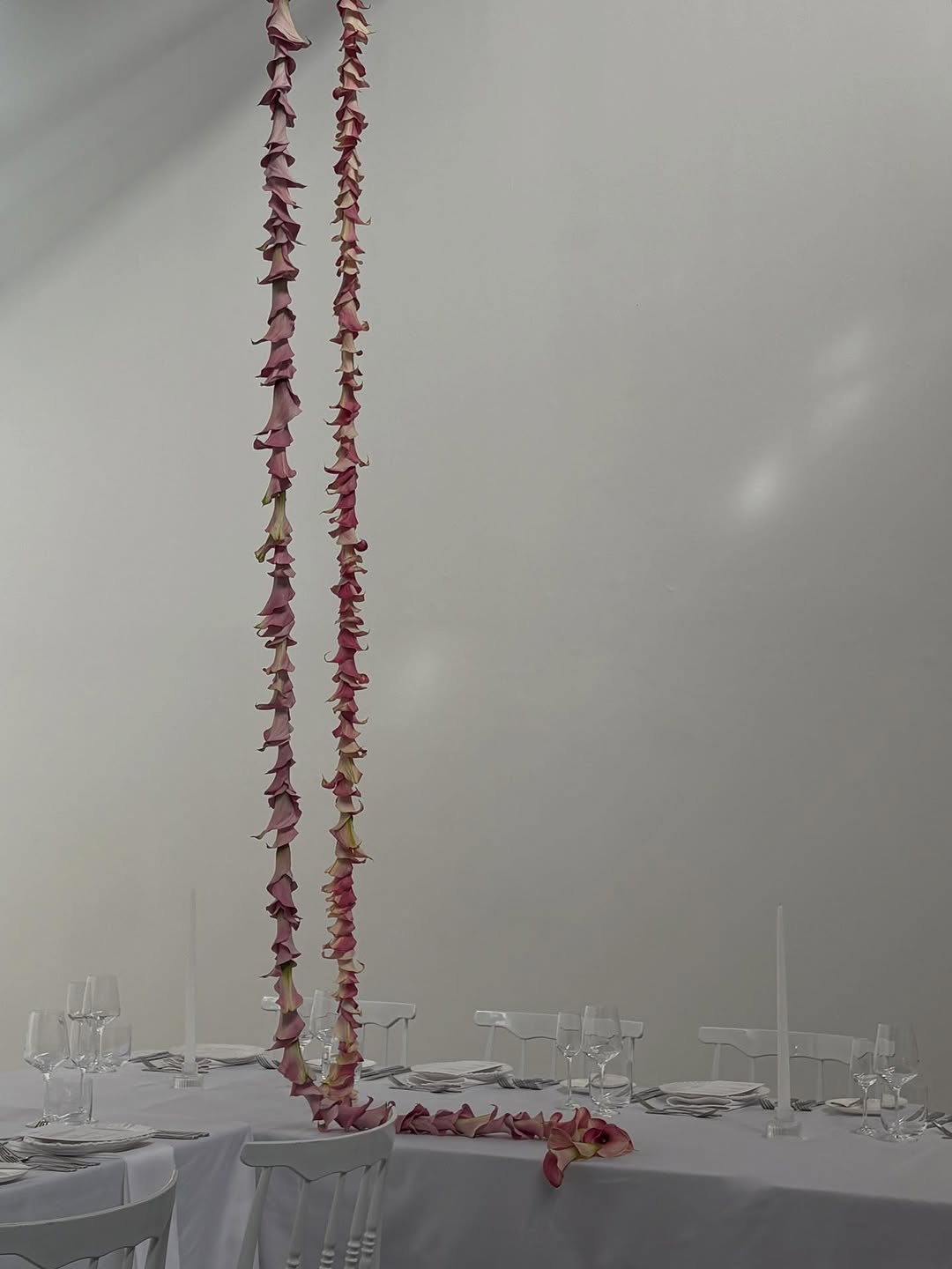 Тонкие лианы (или гирлянды) из необильного набора цветков становятся вестниками отказа от симметрии и пышности в пользу движения и легкости. В этом флористическом исполнении цветки читаются как линия, знак, след.