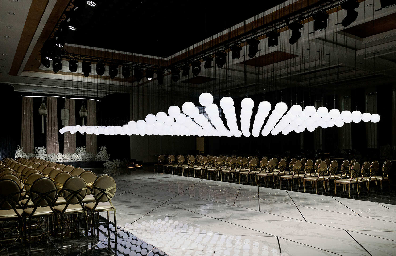 «MARSHAL Grand Hall — это место, где в абсолютной идиллии сливаются волшебство света, звука, стиля и комфорта. Не похожий ни на что, исключительный банкетный холл, вмещающий 2 зала торжеств, ресторан а-ля карт, kids-play cafe, 2 бизнес-зала. Холл, поражающий своими масштабами и предназначенный для воплощения в жизнь самых грандиозных и нестандартных торжеств, свадеб, музыкальных и постановочных мероприятий», — представители MARSHAL Grand Hall.