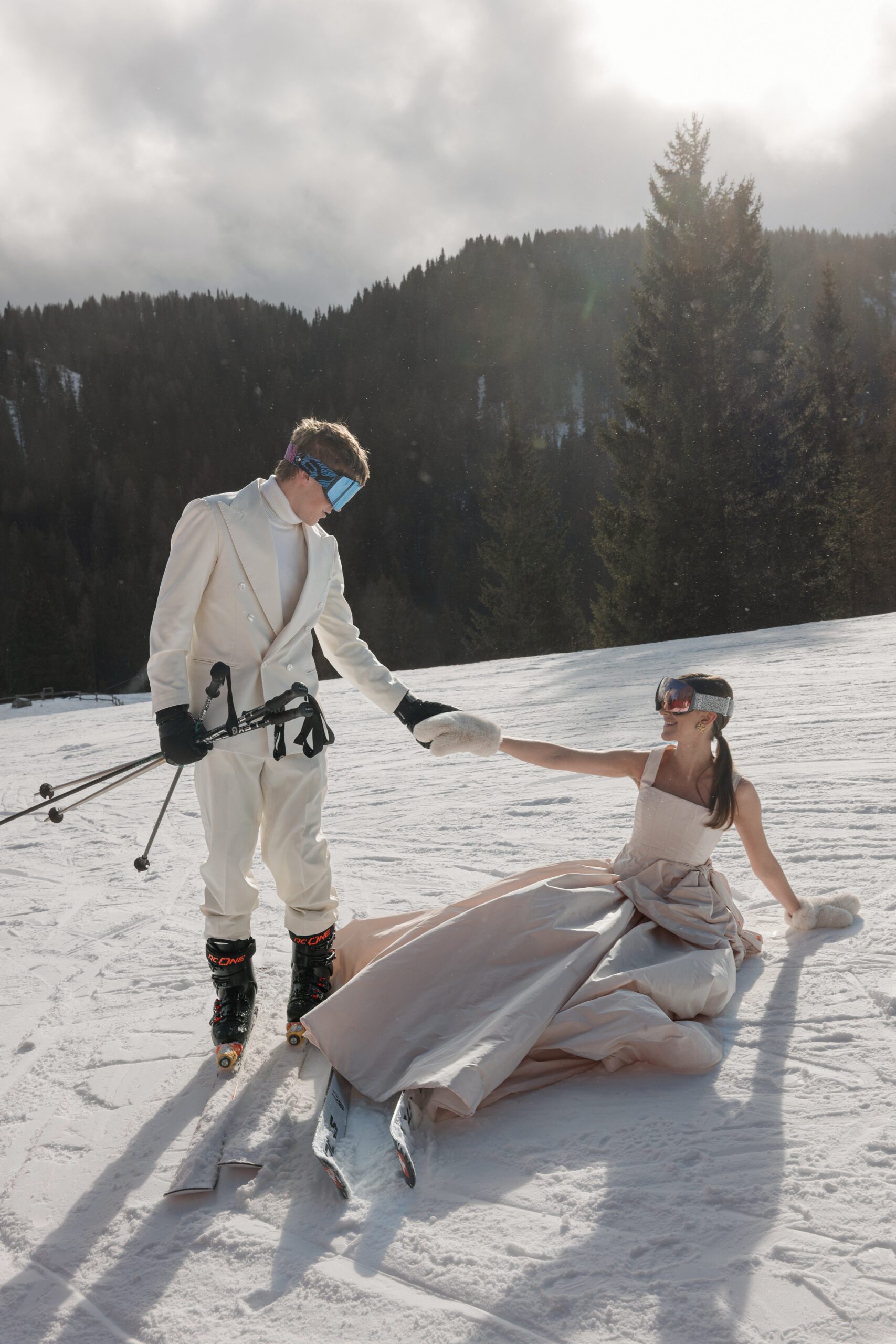 В горах, среди благородной тишины, прозрачного воздуха, которому, кажется, нечего скрывать, и наивности солнечных бликов рождается история настоящей любви. Творческая съемка демонстрирует уникальный потенциал альпийского направления, которое стремительно набирает популярность у современных пар.