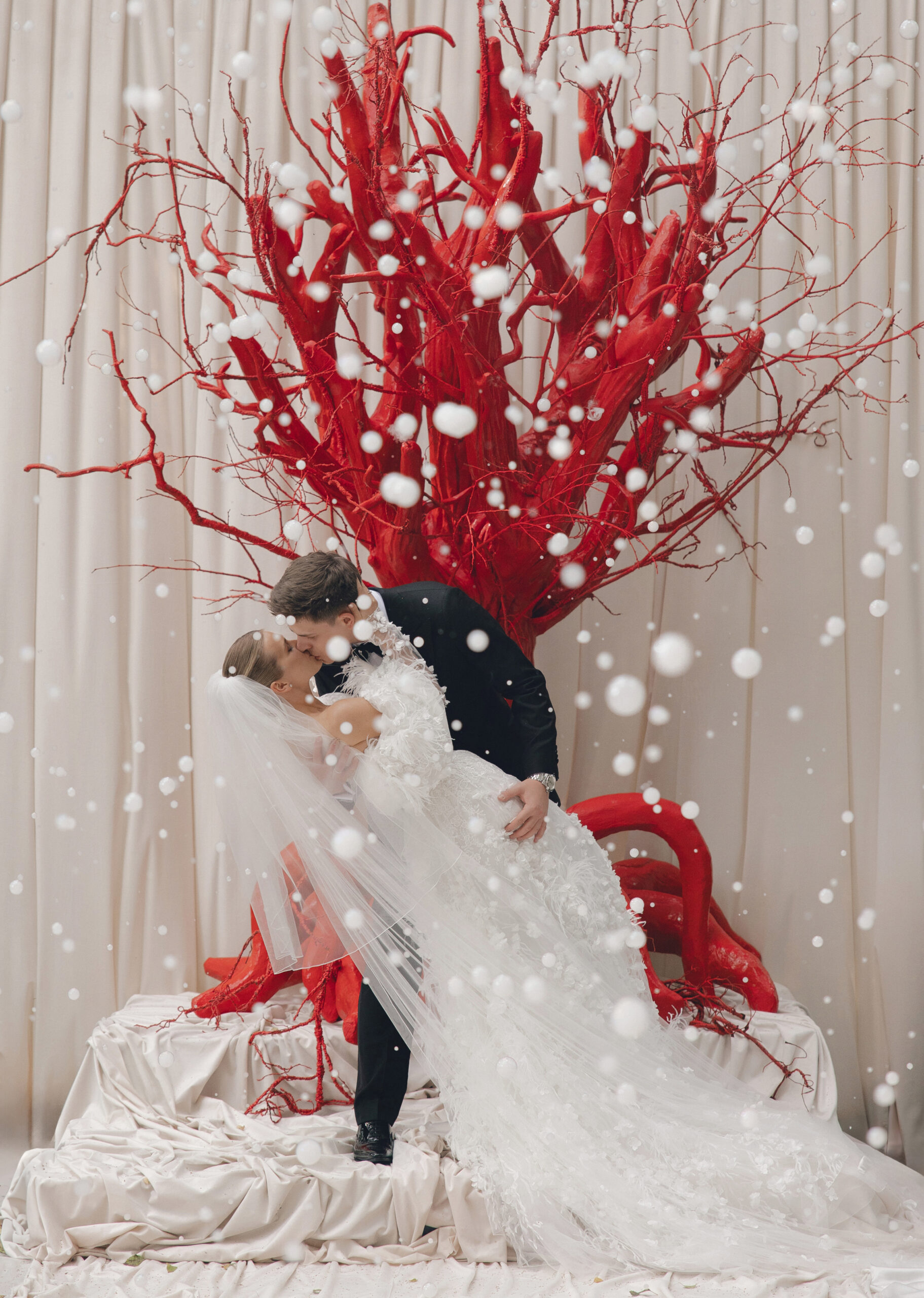 К примеру, красное дерево на свадьбе, организованной Vesna Wedding в 2025 году, стало символом рода, корней, из которых выросли молодожены, создавая свое семейное древо. Символом крови, которая бежит по нашим сосудам, символизируя корни, которые нас питают.