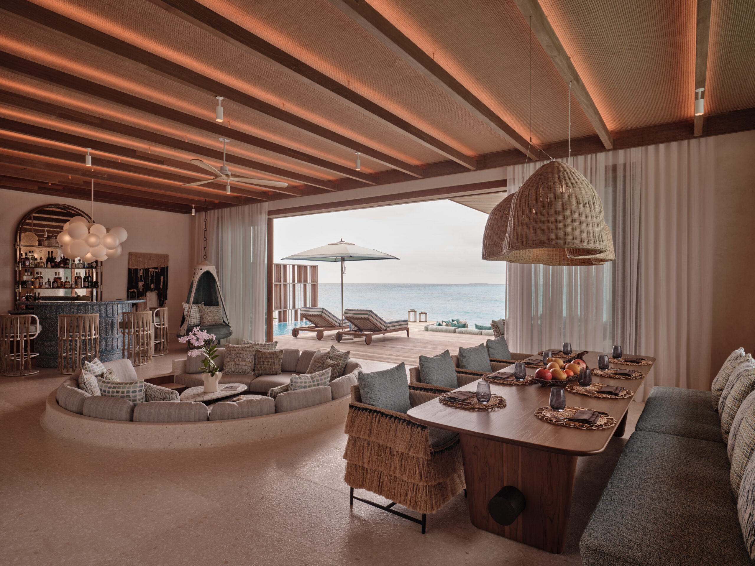 Отель .Here, который откроется в декабре этого года, расположен сразу на двух островах — Somewhere и Nowhere. Роскошный отель предлагает интуитивно понятный сервис, многогранные впечатления и полное уединение. Здесь всего 9 просторных вилл (водные и пляжные), один бар и ресторан. Гостям также доступны услуги и развлечения соседнего курорта Finolhu Baa Atoll Maldives. Новый отель класса «ультра люкс» — один из самых уединенных на Мальдивах. Если хотите сбежать от всего мира, этот вариант точно для вас.