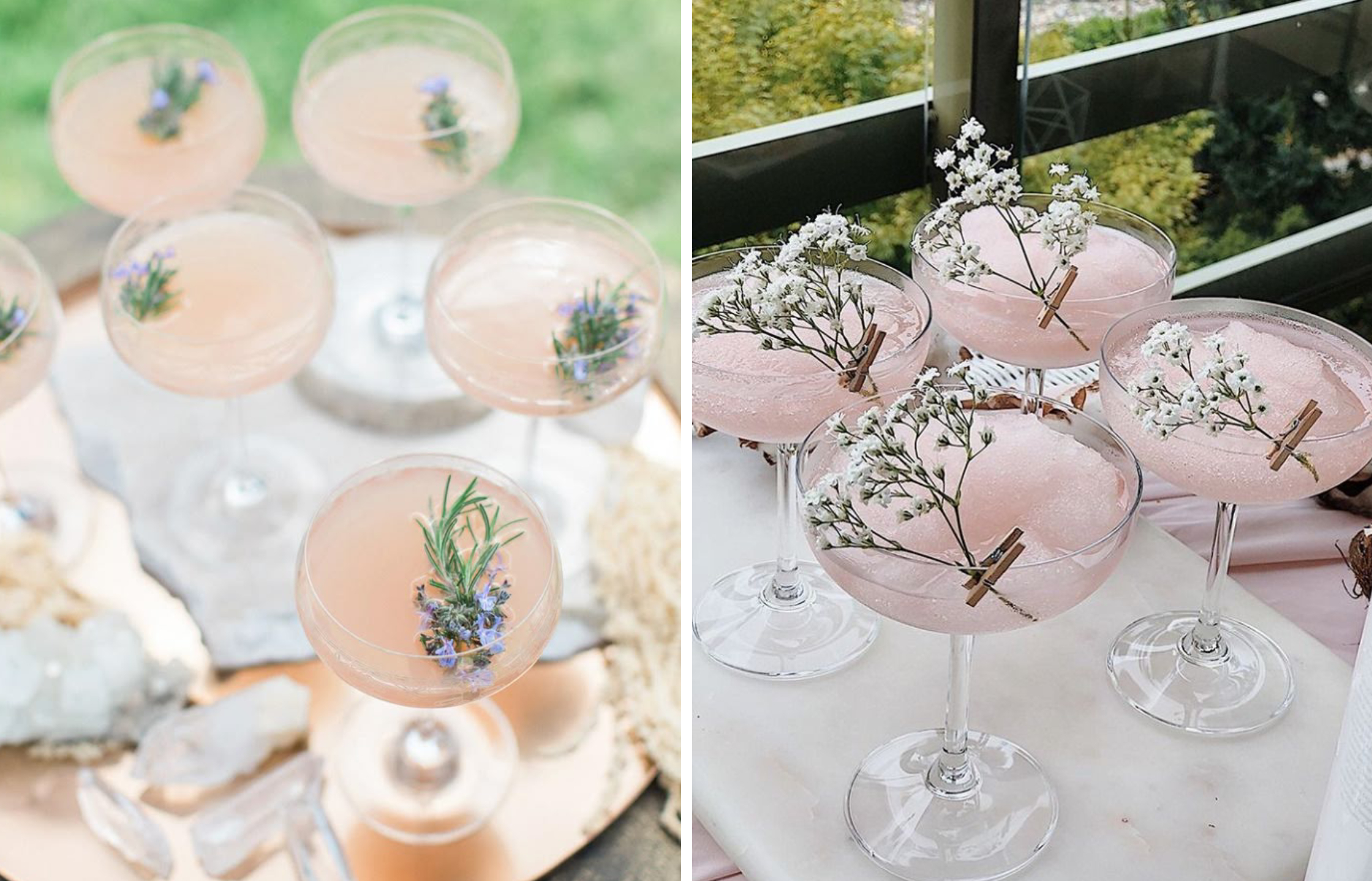 Следующая идея — это использование цветов непосредственно в бокалах. Это может быть небольшой букетик, который будет закреплен на бокале с коктейлем, или бутоны, плавающие прямо в коктейле. Такой подход добавит эстетики любому столу. Чтобы не нарушить подачу напитка, стоит использовать небольшие и крепкие цветы, которые сохранят свою форму. Например, подойдут гвоздики, маргаритки или даже зелень, например, листья эвкалипта.