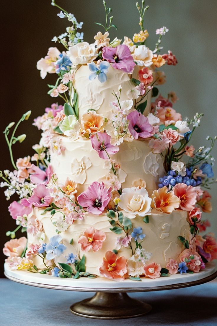 Для главного свадебного десерта подойдут одноярусные или многоярусные торты с декоративными элементами в виде цветов, ягод или фруктов. Можно выбрать простую форму торта и дополнить ее интересными деталями. Многие кондитеры используют для украшения настоящие цветы и растения.