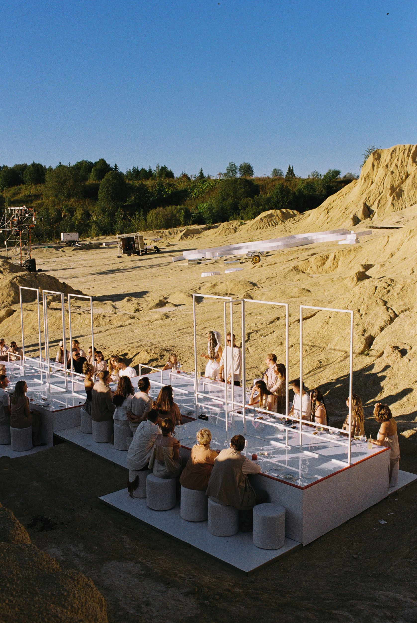 Совсем иное настроение у свадьбы-фестиваля MURPH, проект, созданный в этом сезоне агентством Platina.Wedding, где финалисты Wedding Awards Северо-Запад создали праздник прямо в карьерах под Петербургом. Это был настоящий Burning Man в северной интерпретации: огонь, музыка, свобода, экспрессия. Тот редкий случай, когда свадьба превращается в арт-событие, где каждый гость — часть перформанса.
