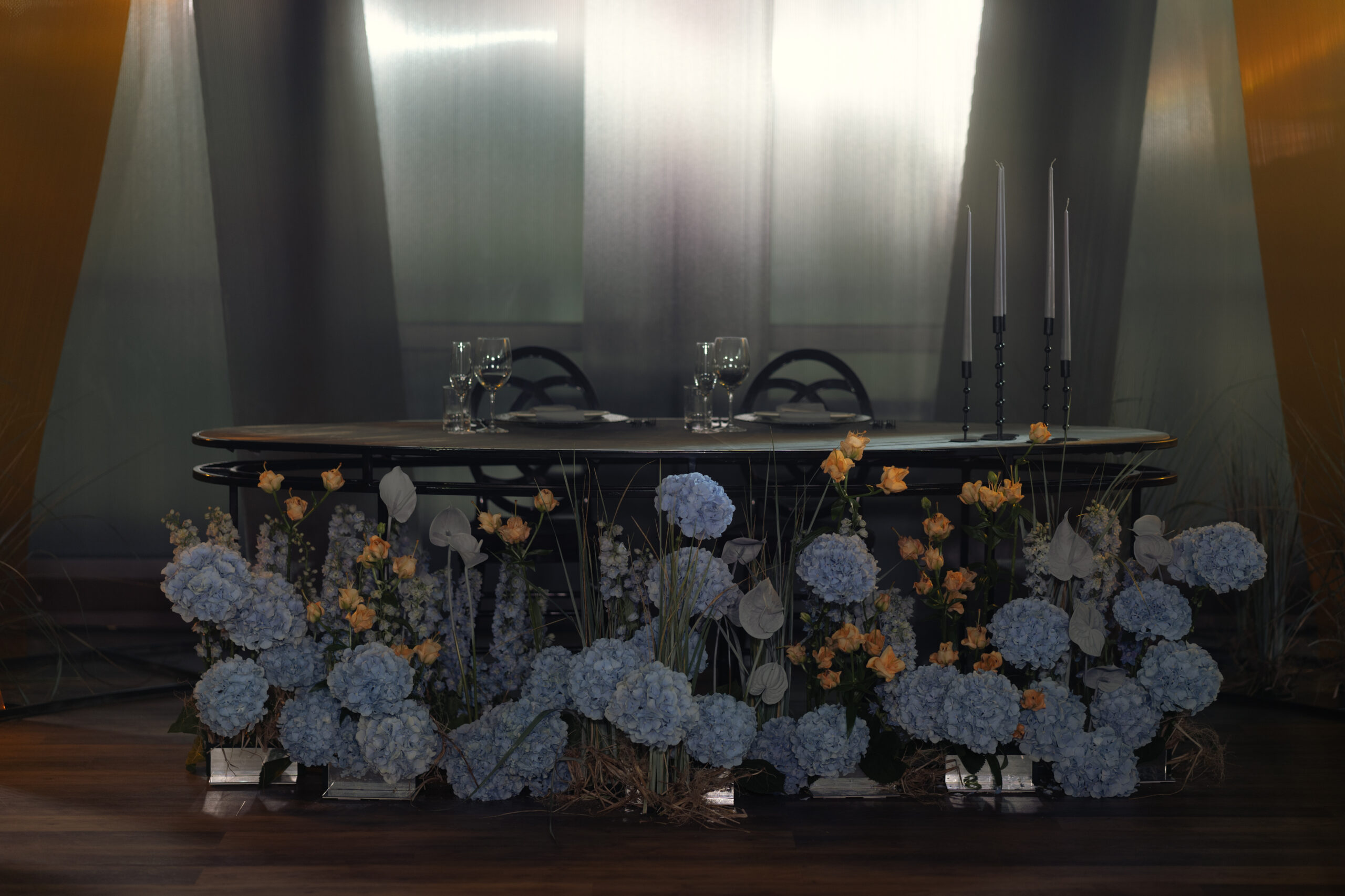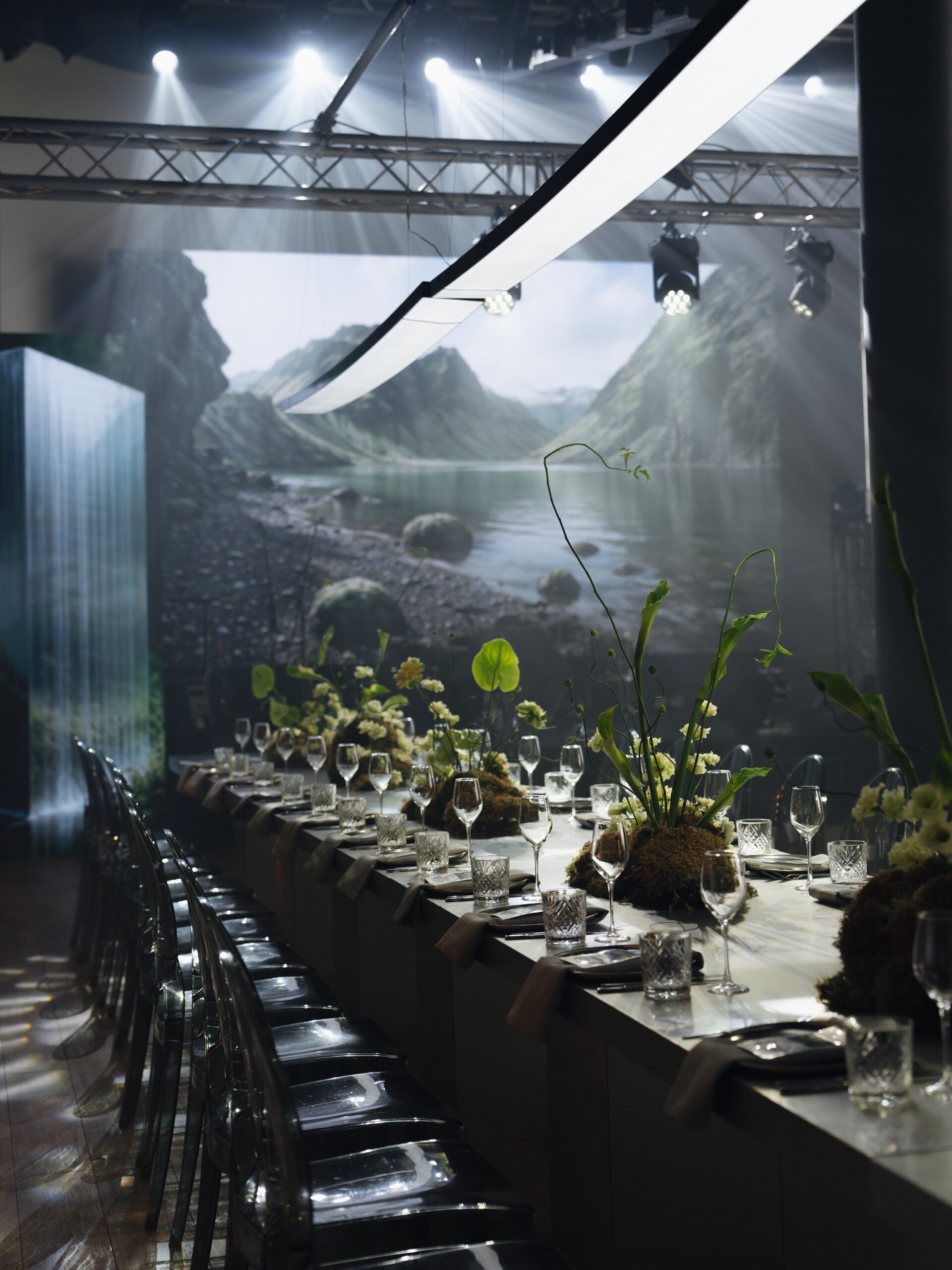 Один из таких примеров — проект агентства Rimsha Wedding, финалистов премии, вдохновленных любовью пары к Исландии. Церемония была пронизана символами: главными арт-объектами стали два четырехметровых водопада — как две мощные силы, стоящие напротив, но притягивающиеся. Их форма напоминала фигуры — два живых образа, обращенных друг к другу, соединенных в движении. Это был образ любви: не статичной, а динамичной, текучей, вечно стремящейся навстречу.
