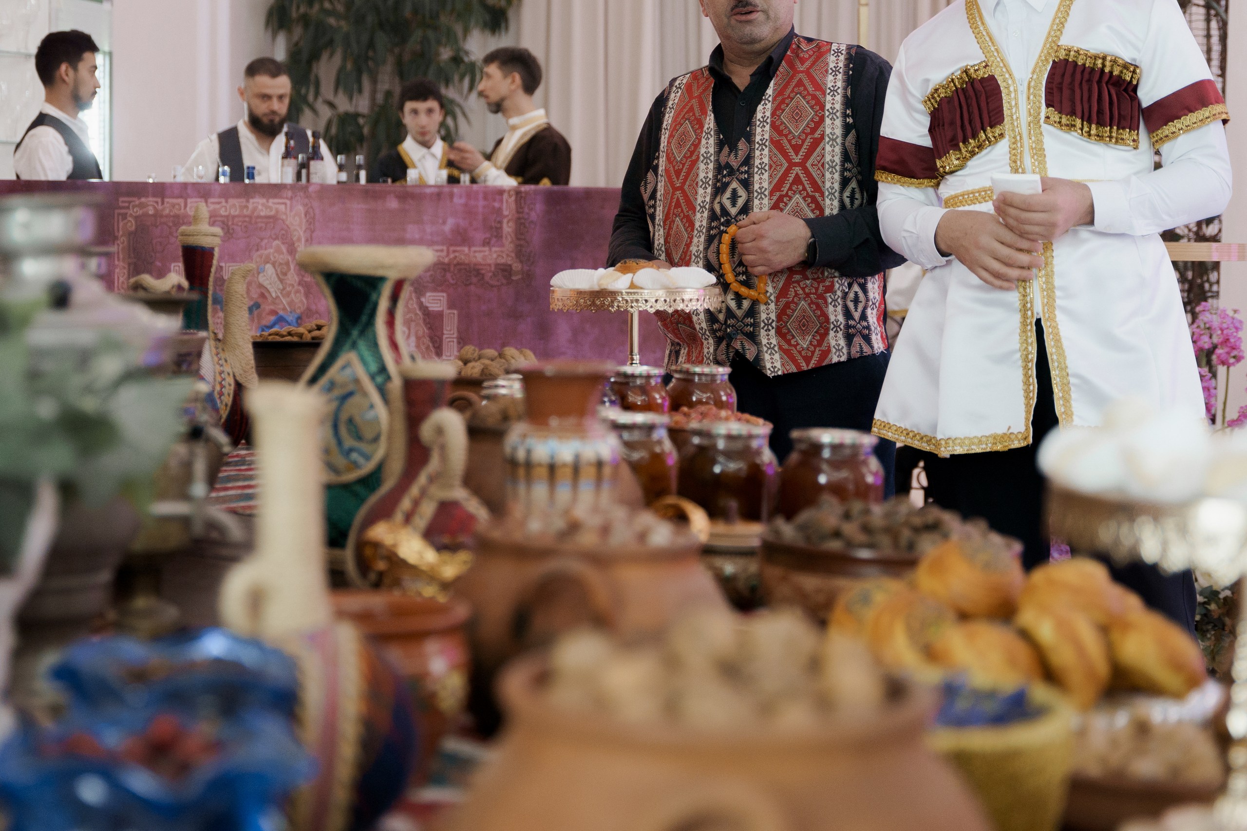 Влияние национальных свадеб на весь регион очень велико. Кавказские торжества — всегда масштабные и грандиозные. У нас принято, чтобы стол ломился от кулинарных изысков. Курсовая подача или формат фуршета — все еще большая редкость. Сильно и влияние старшего поколения с их мантрой: «Главное, чтобы никто не ушел голодным». К чему приводит любовь к обильным застольям? Иногда еда на столах стоит в два-три яруса, и не может быть и речи о низких композициях, минималистичной сервировке и декоре. Некоторые агентства в борьбе за красоту и эстетику даже научились пользоваться секретными приемами.