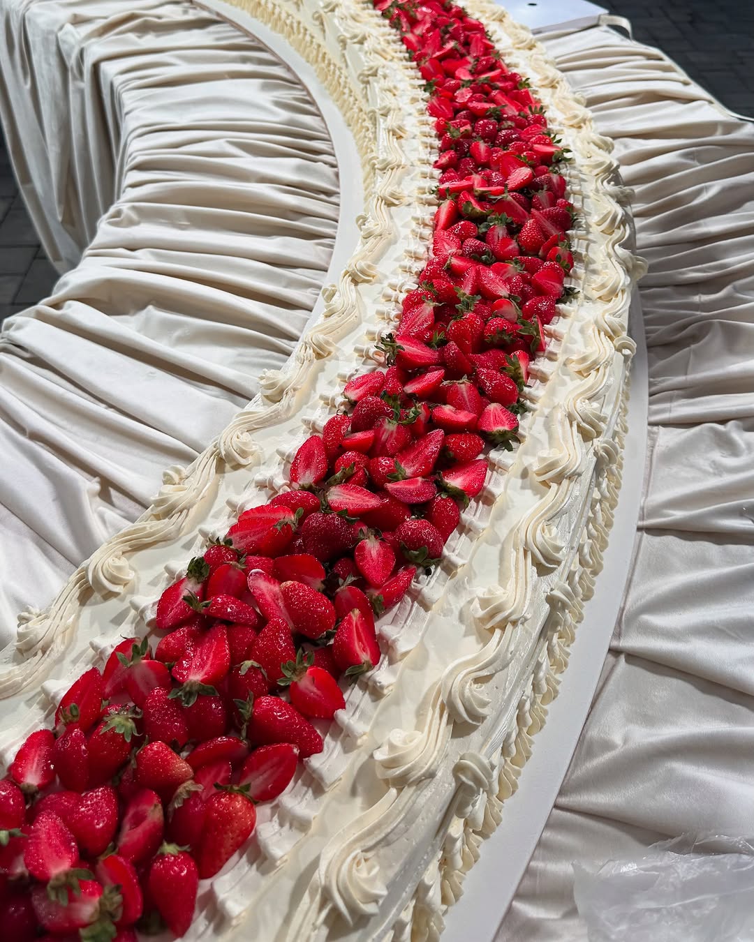Одна из ключевых особенностей длинного торта — сборка непосредственно на площадке, такое решение влечет за собой ряд нюансов. Важно рассчитать время на сборку и декор. Также кондитеру нужно подобрать стабильную начинку, чтобы в процессе сборки десерт не потерял вид и форму. И конечно, имеет значение подбор покрытия и декора; тут нужно учесть температурный режим, погодные и климатические условия, например, чтобы не заветрилась ягода или не растаял крем.