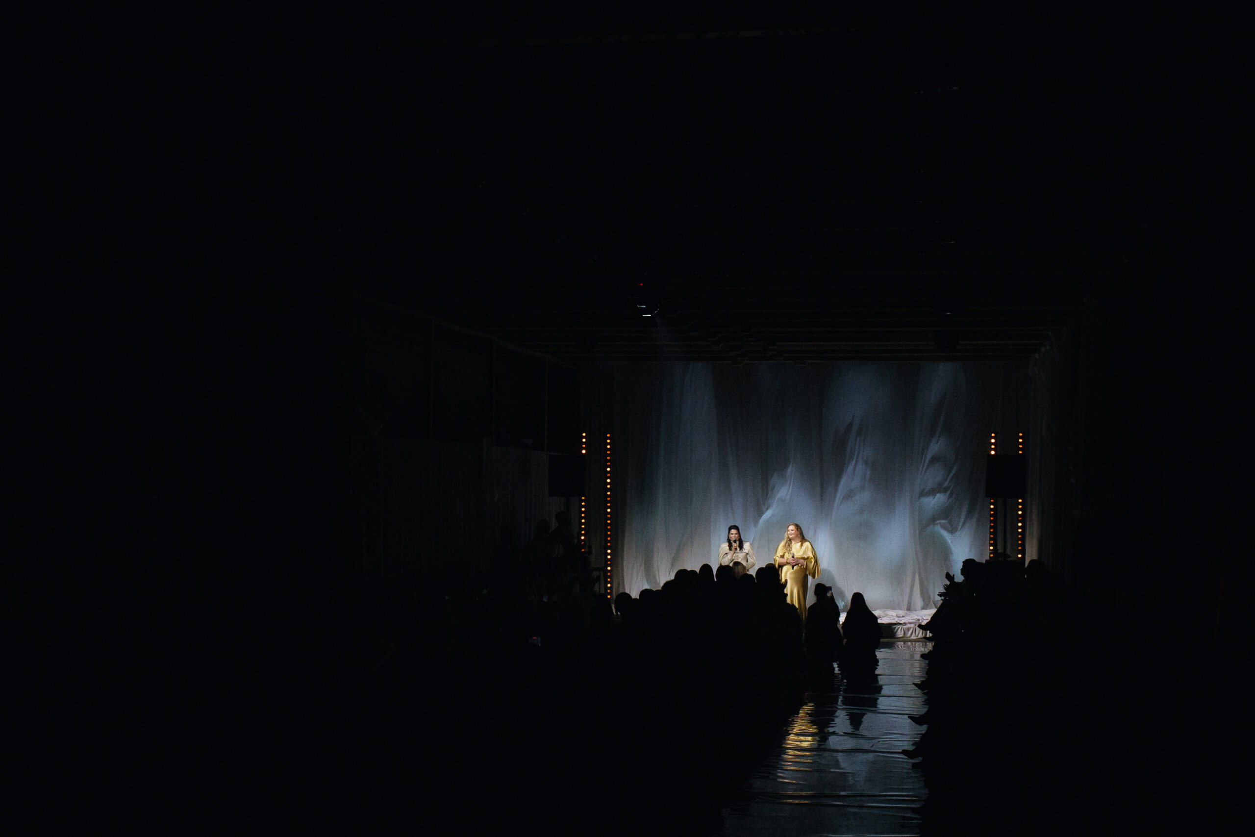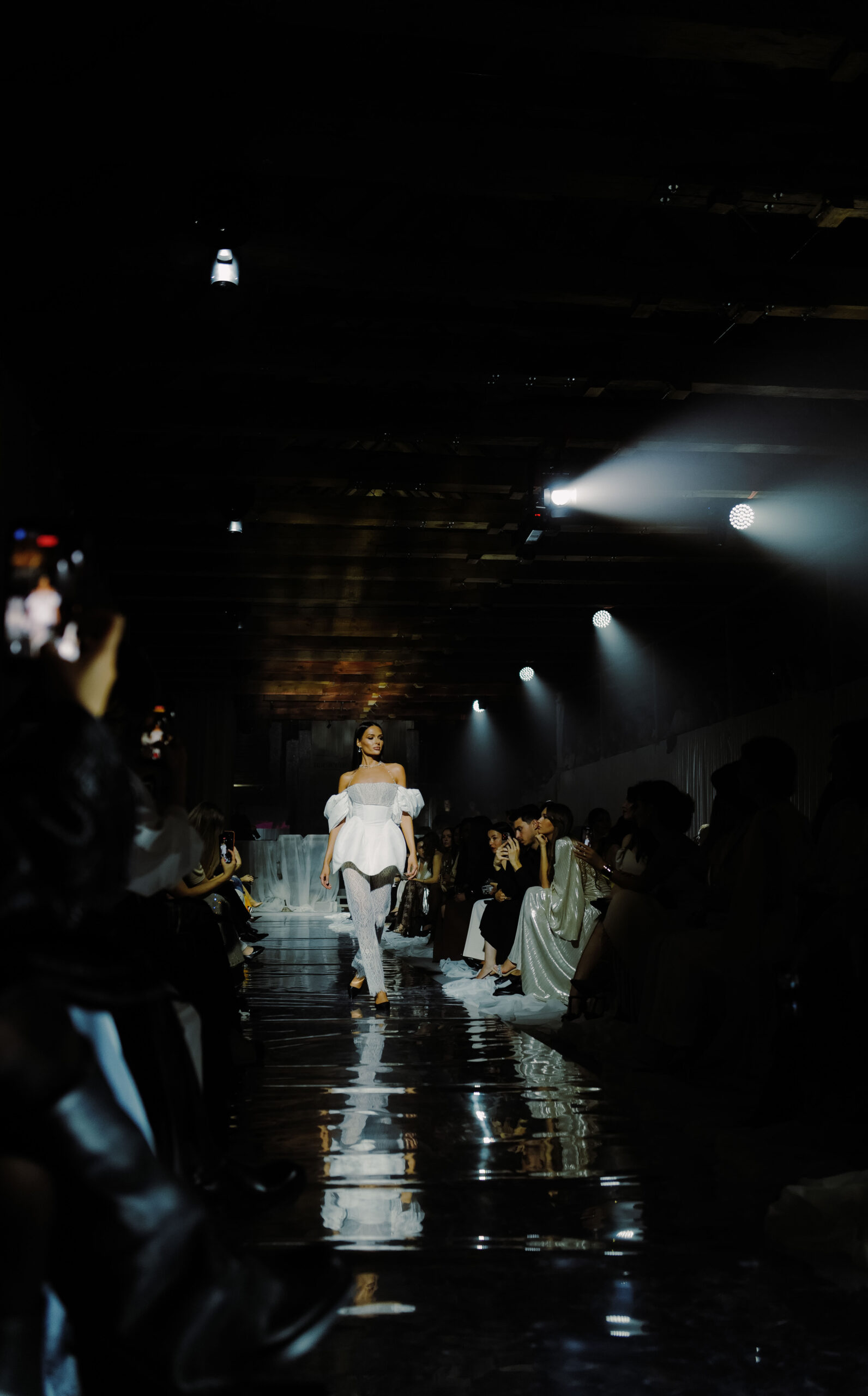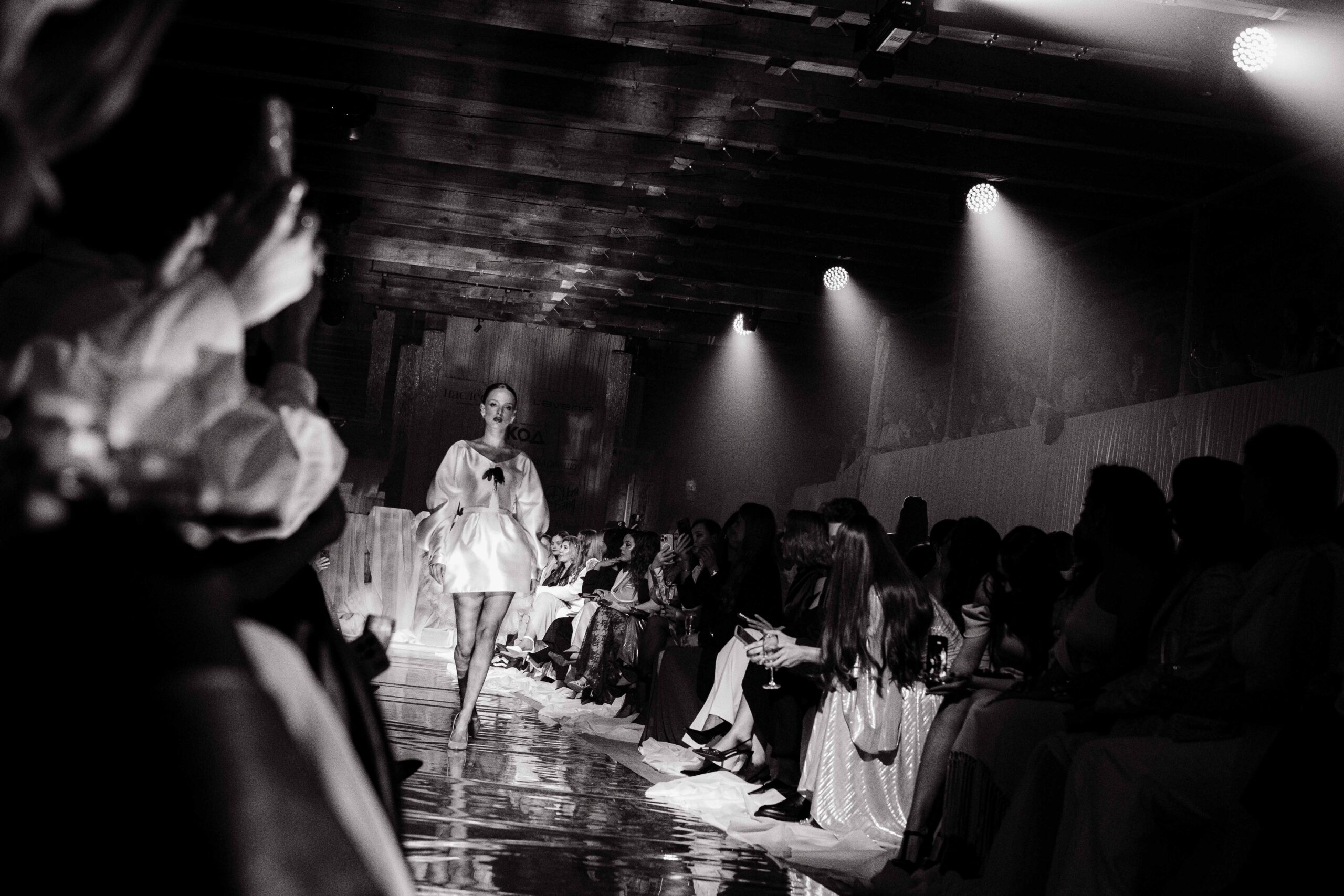 Коллекция петербургских дизайнеров и режиссура калининградского агентства объединили северную поэзию и европейскую строгость в тканях и силуэтах. Атмосферу вечера дополнили декор, вдохновленный потоками струящейся воды, и чарующий голос приглашенной артистки — Екатерины Великопольской.