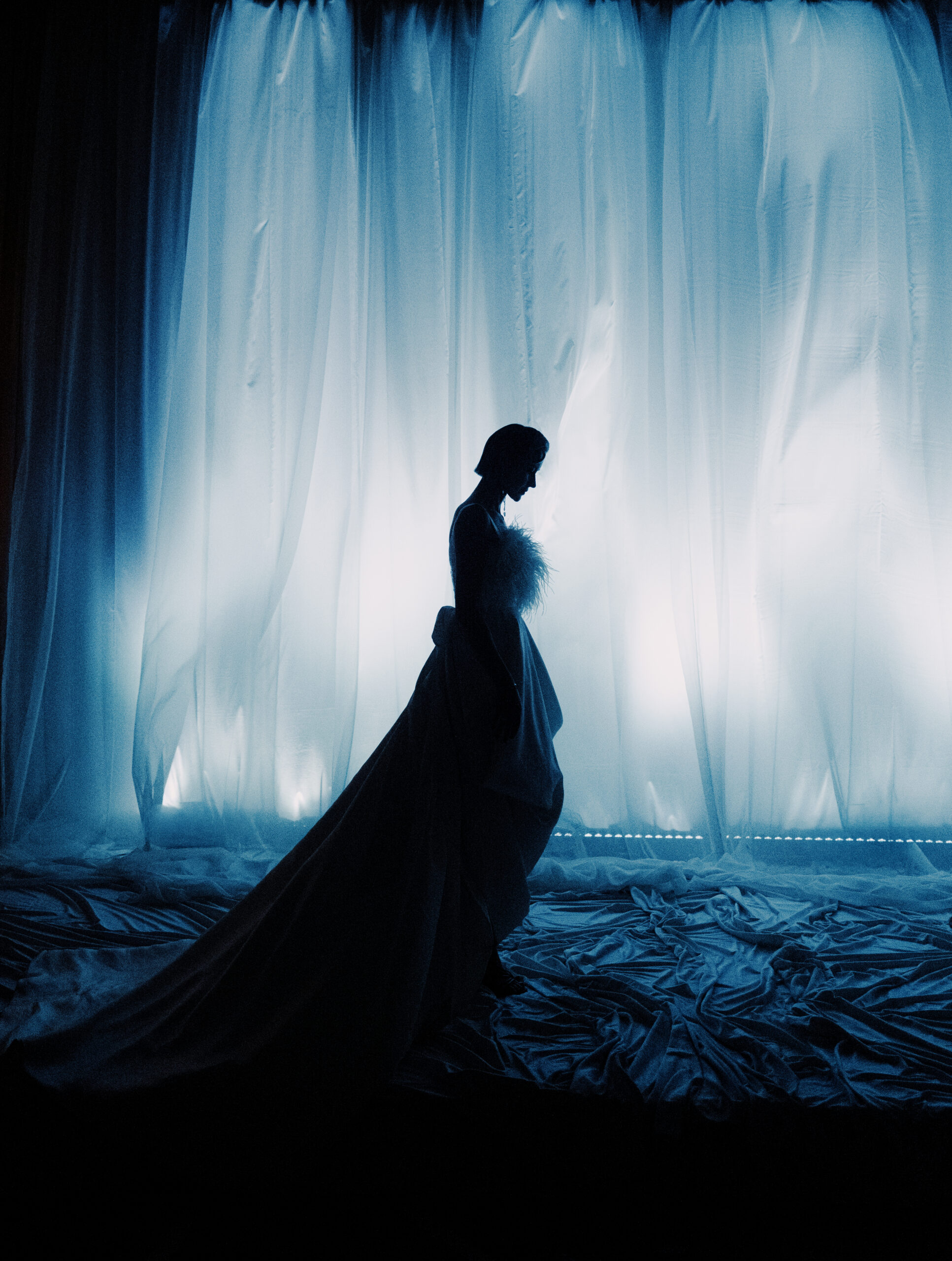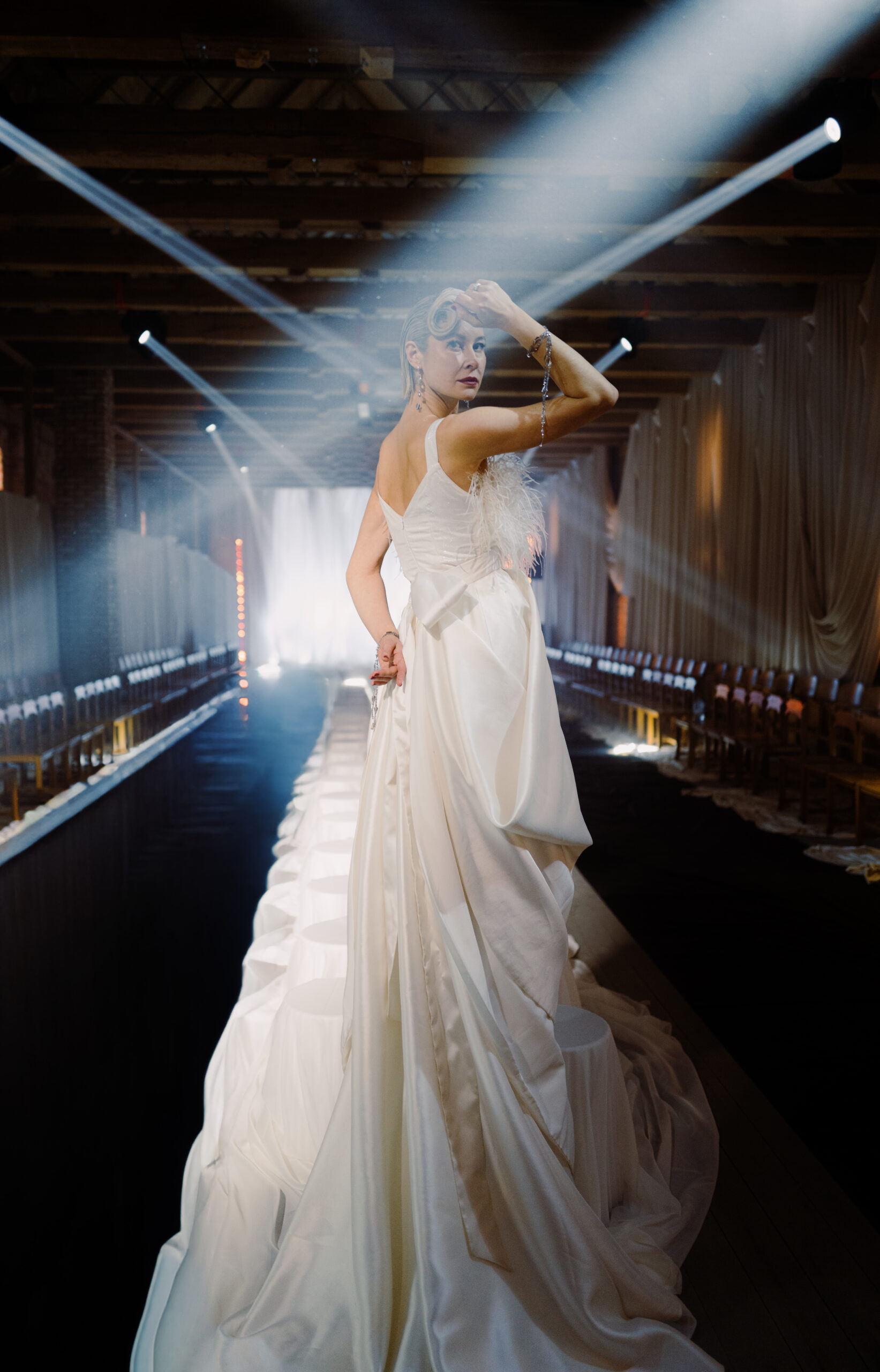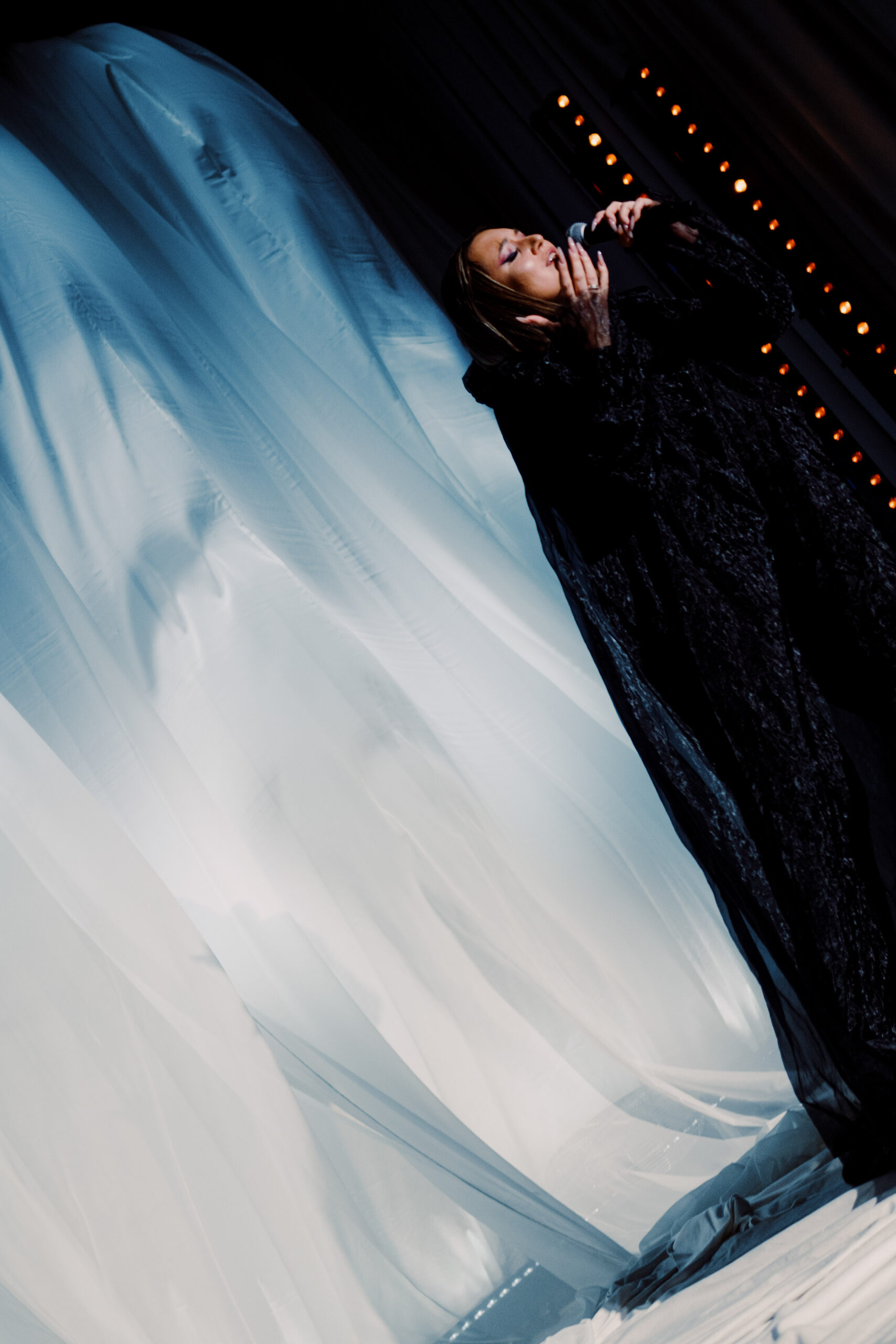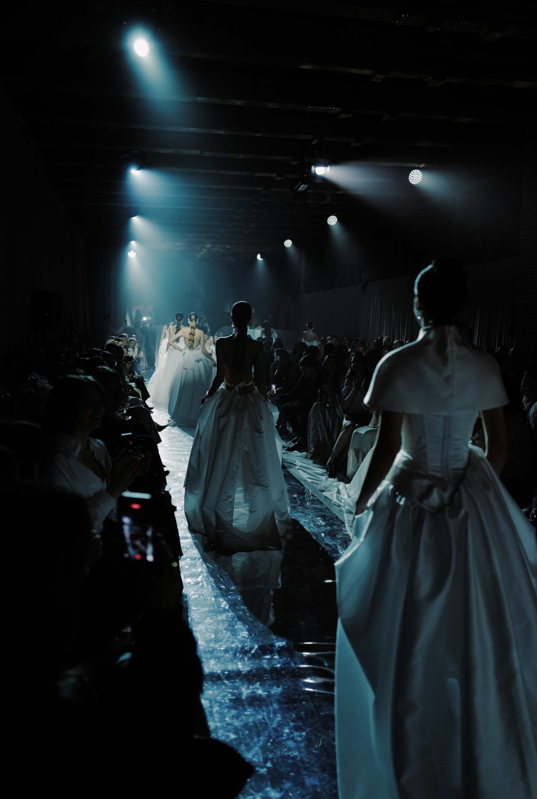 Коллекция петербургских дизайнеров и режиссура калининградского агентства объединили северную поэзию и европейскую строгость в тканях и силуэтах. Атмосферу вечера дополнили декор, вдохновленный потоками струящейся воды, и чарующий голос приглашенной артистки — Екатерины Великопольской.
