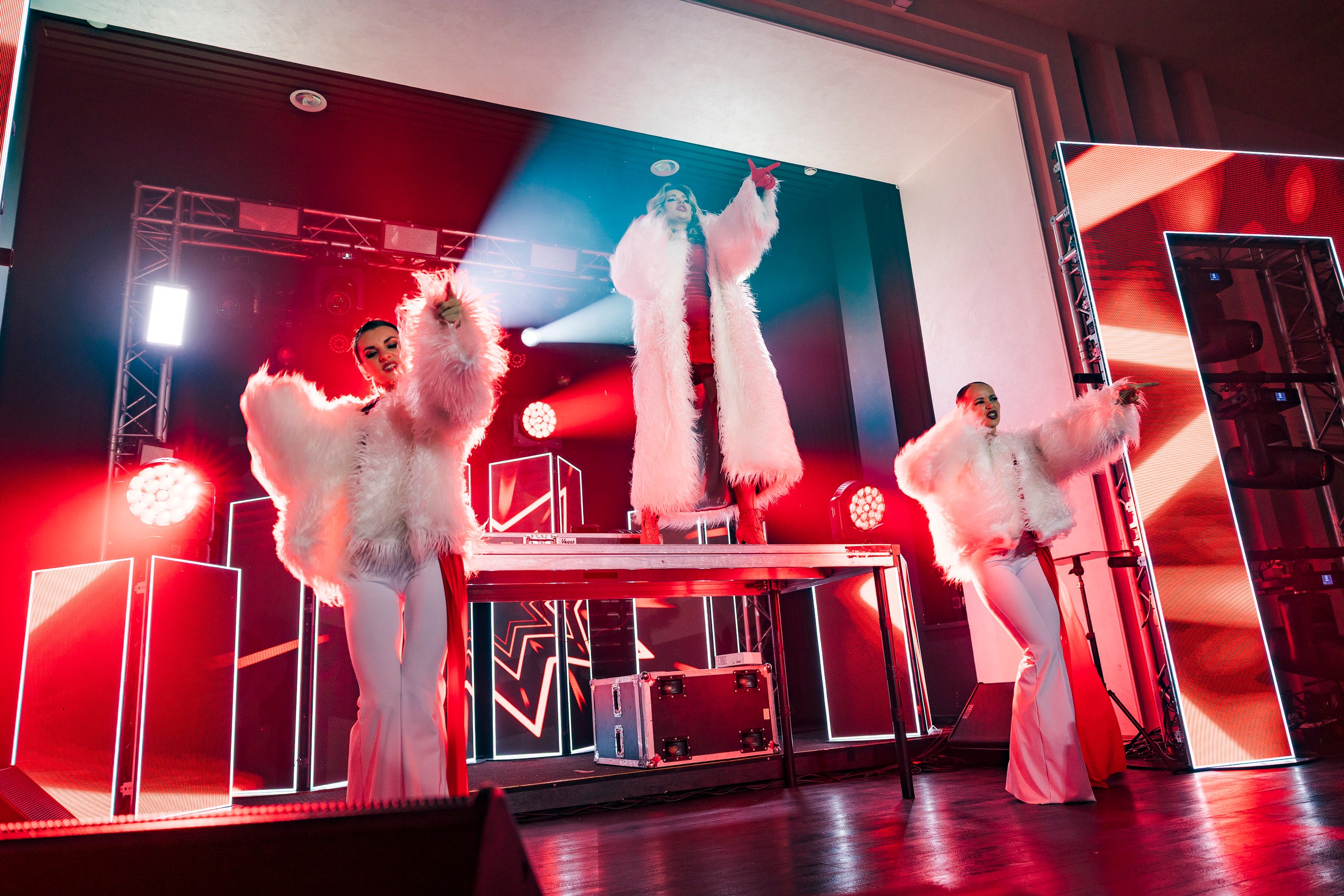 Отдельное внимание уделяем устойчивости диджейского станка. Во время шоу я активно взаимодействую с конструкцией: поднимаюсь на него, спрыгиваю, работаю в движении. Все это происходит на высоких каблуках, поэтому важно, чтобы оборудование было надежно закреплено и полностью безопасно. Шоу предполагает динамичную сценическую работу непосредственно на самой конструкции. Конечно же, проверяем крепление проводов, потому что сценические костюмы и хореография требуют повышенного внимания к технической безопасности.
